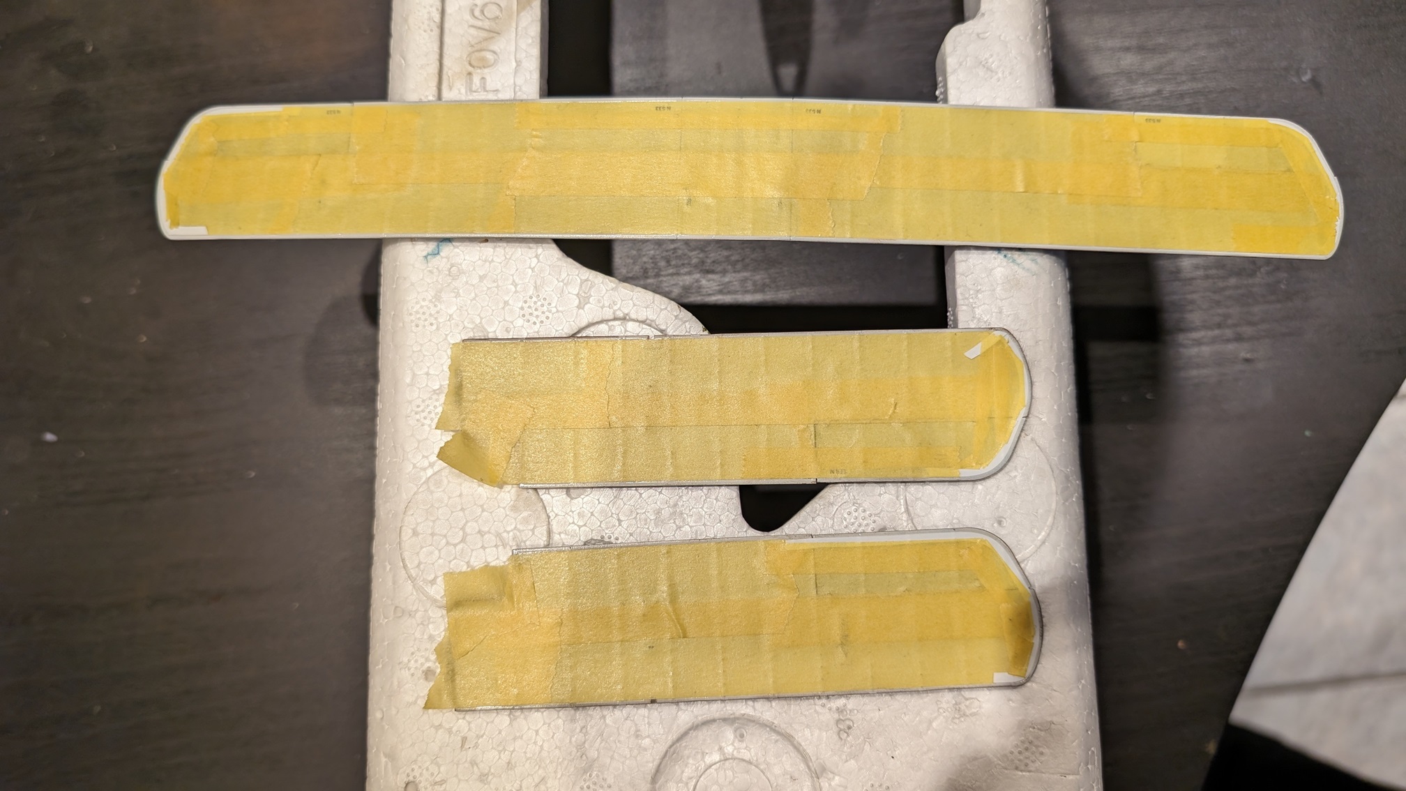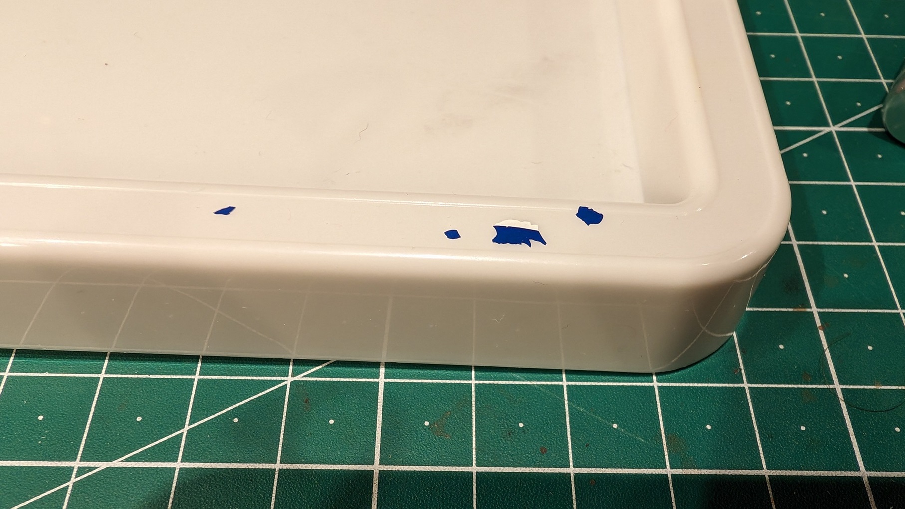 Frische Bastelklinge und die Stücke vom Maskierband abgetrennt. Jetzt weiß ich immerhin, dass das geht: