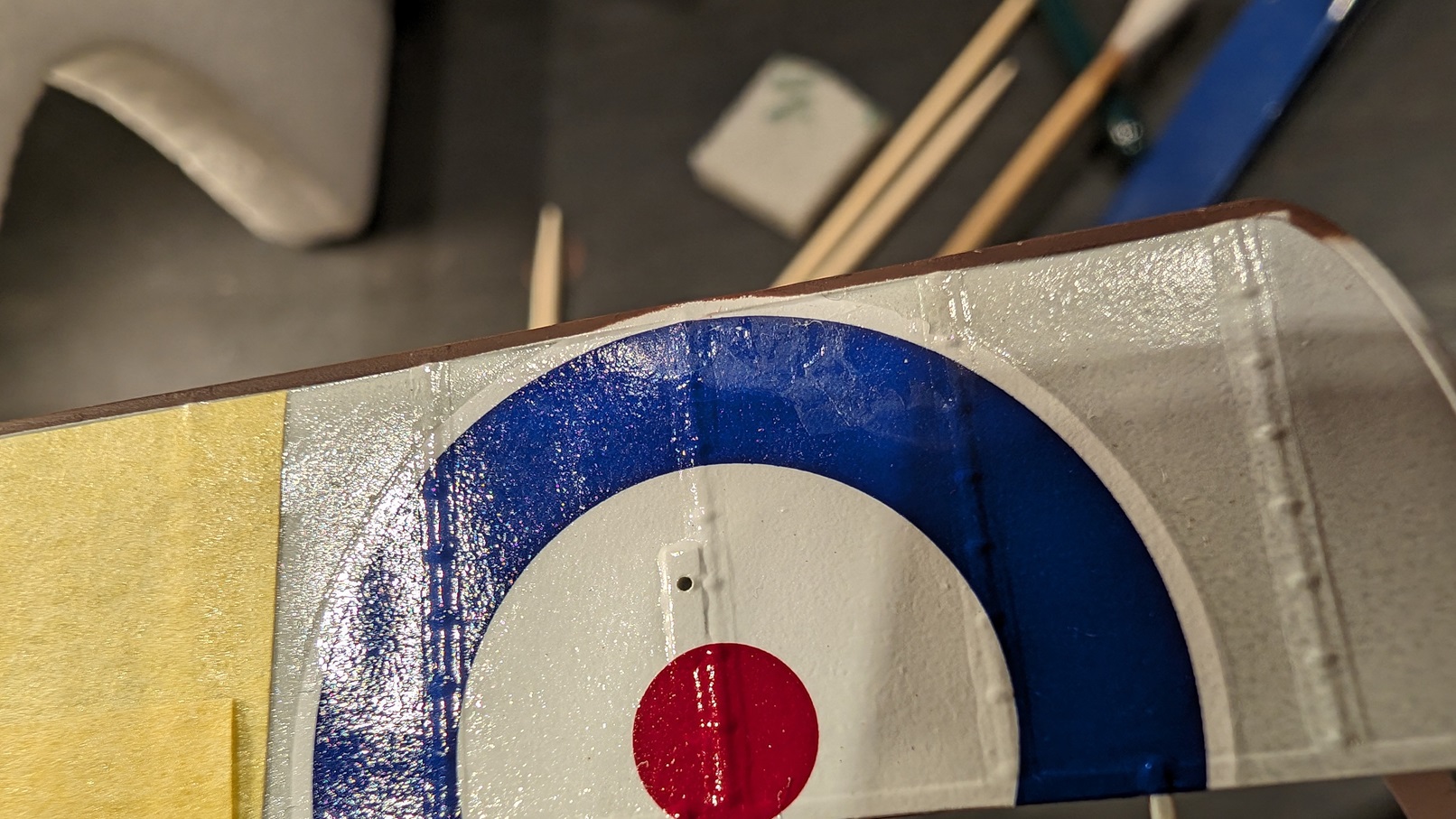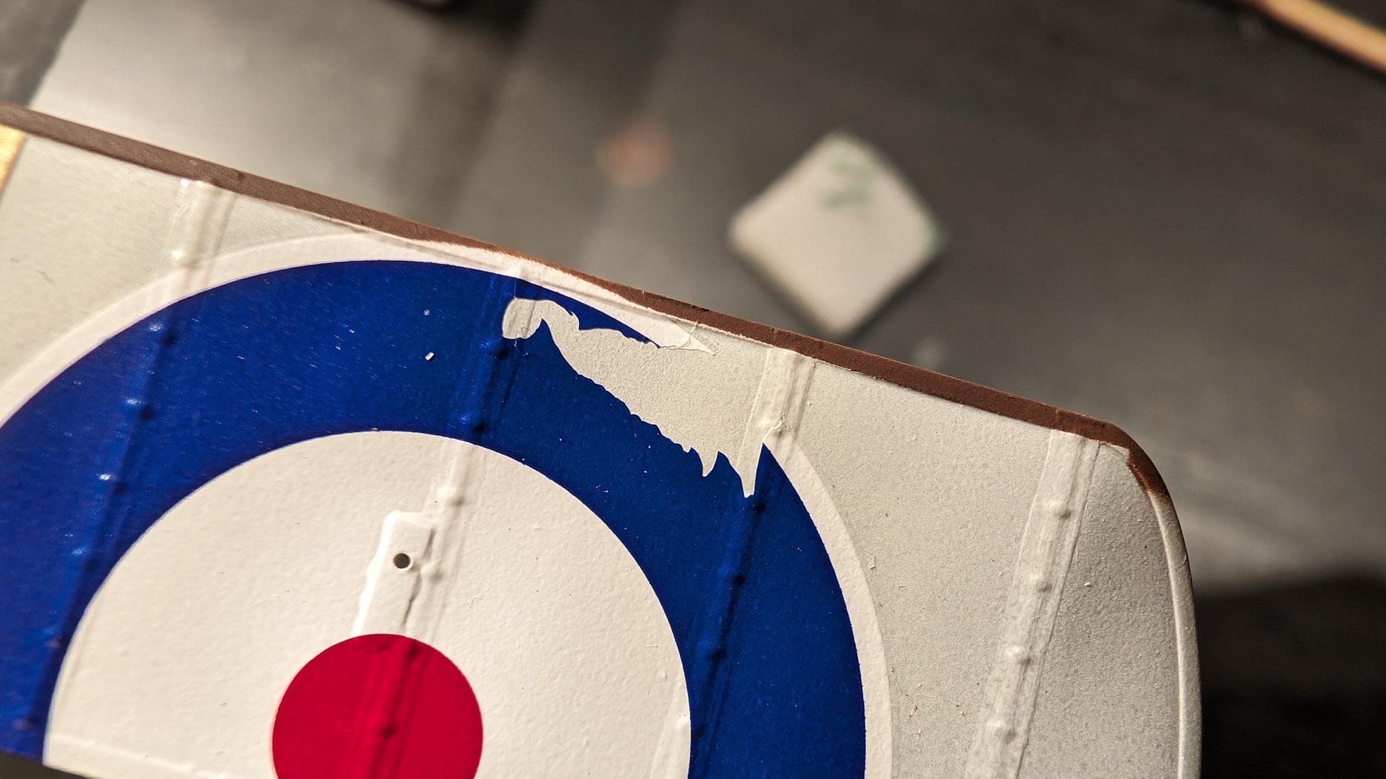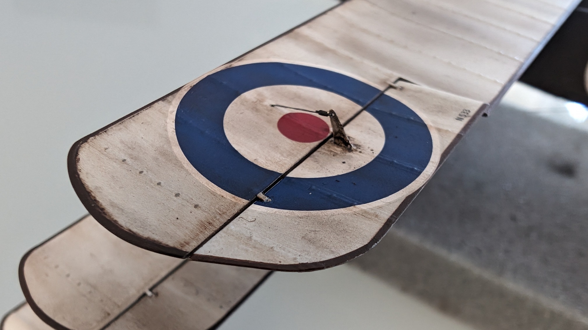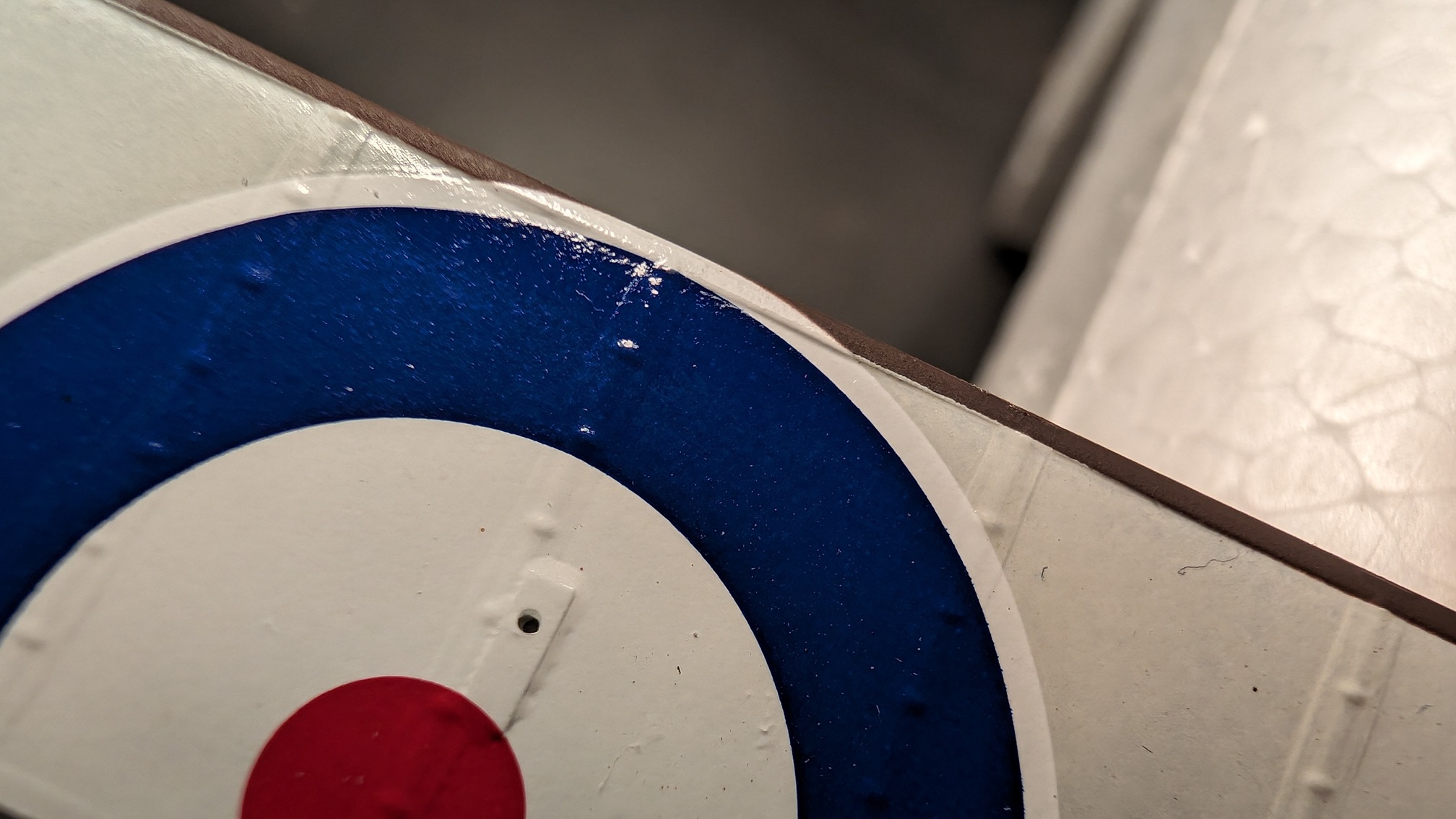 Selbst sprühen klappt sicherlich auch, wird aber beliebig kompliziert, da sich die Kokarden über Tragfläche und Querruder erstrecken. Sicherlich nicht unmöglich, aber nichts was ich machen würde, wenn ich es verhindern kann. :lol: