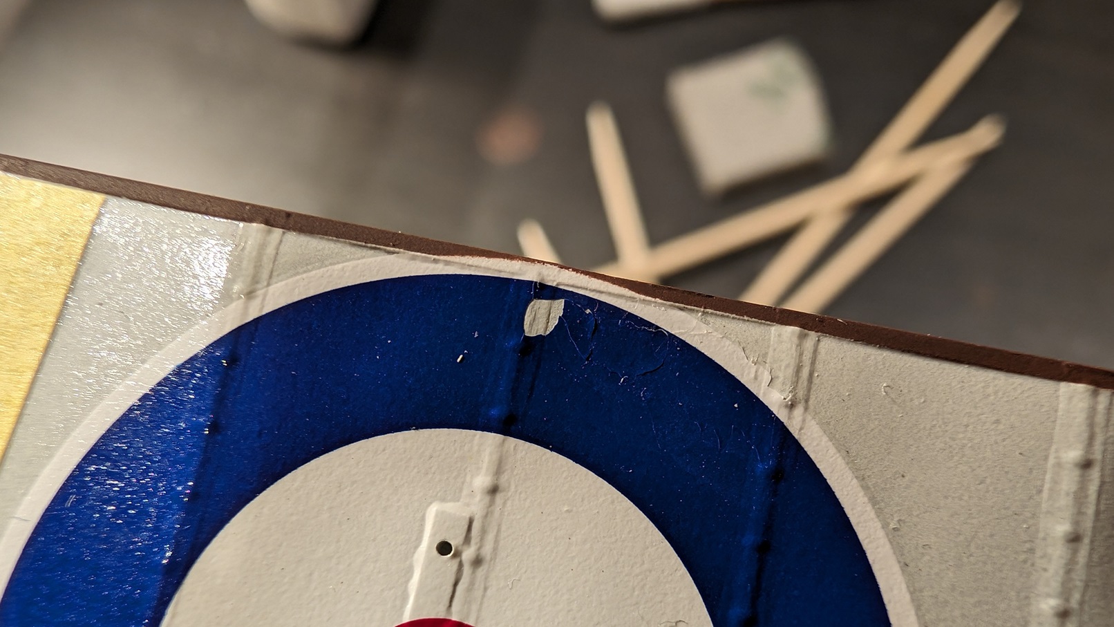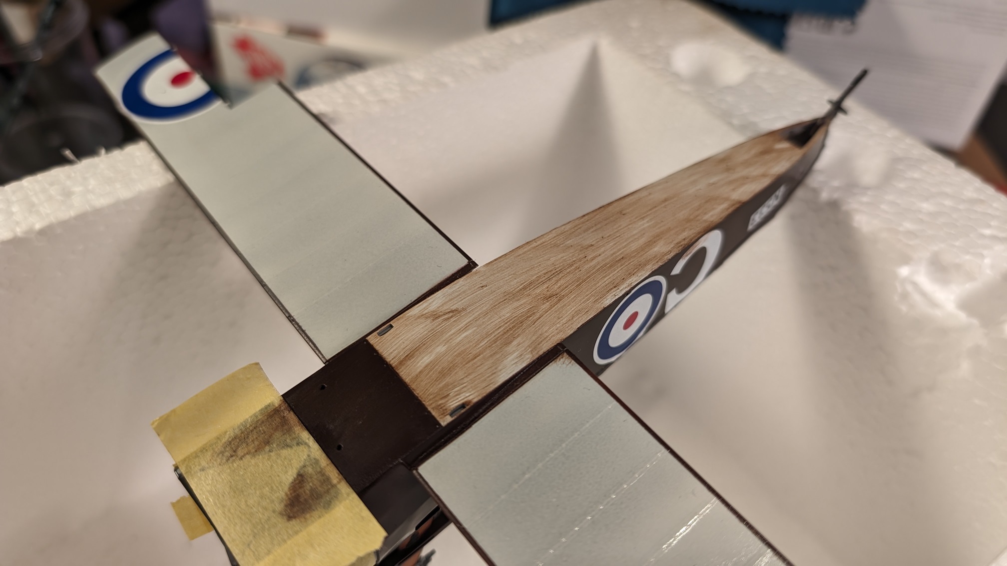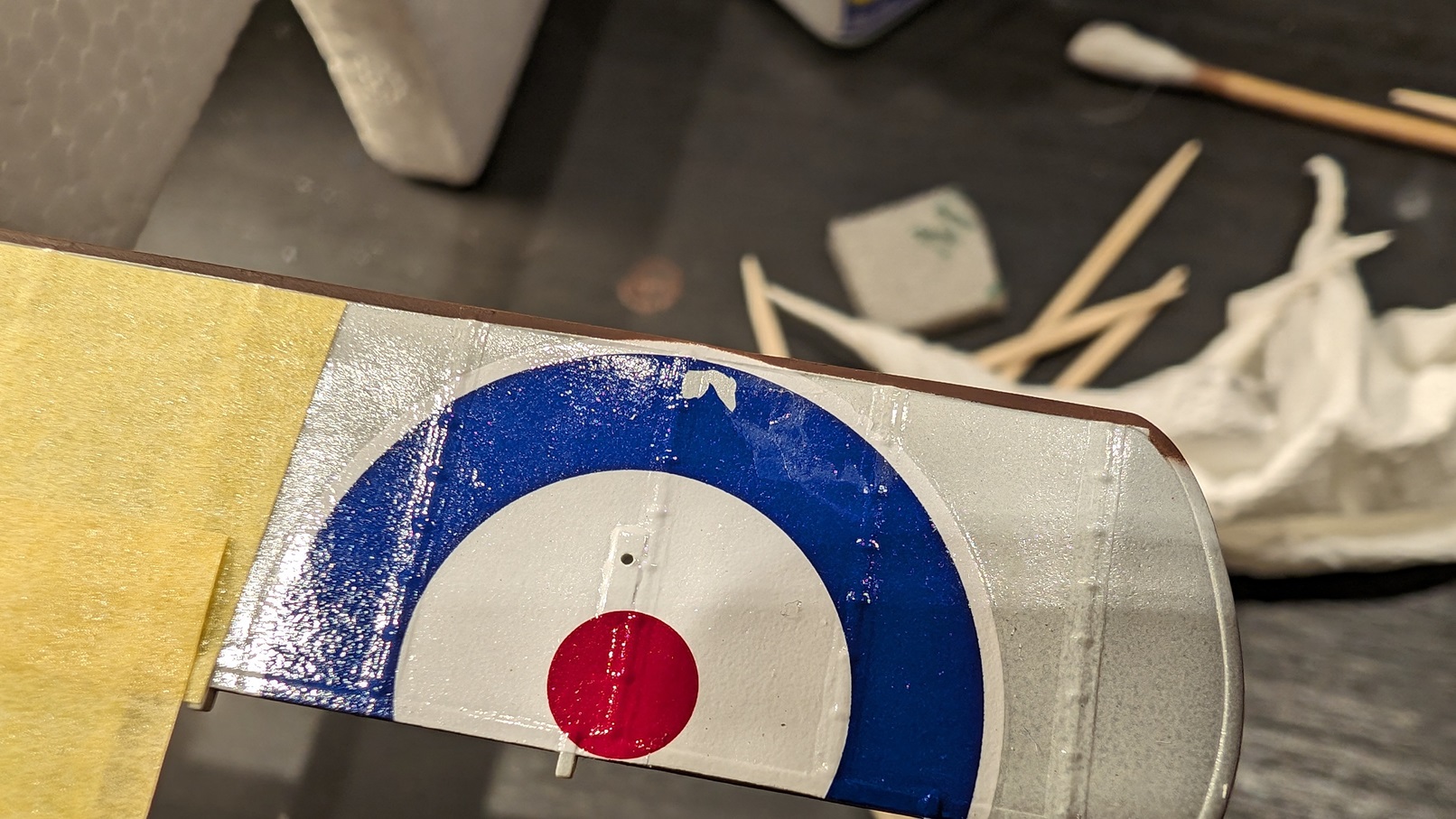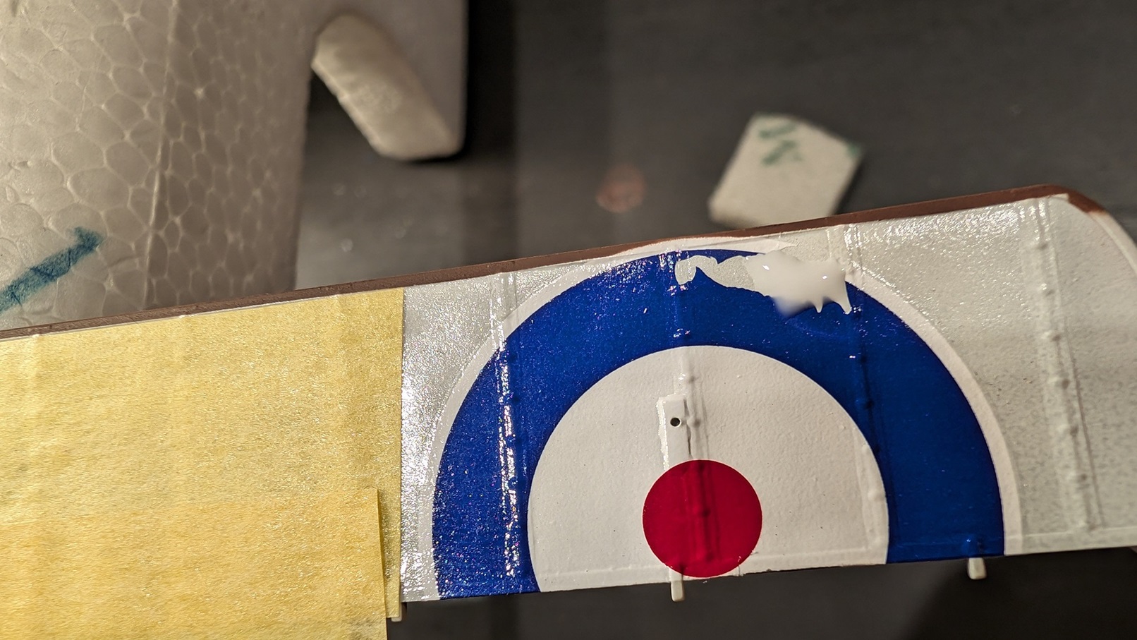 Selbst sprühen klappt sicherlich auch, wird aber beliebig kompliziert, da sich die Kokarden über Tragfläche und Querruder erstrecken. Sicherlich nicht unmöglich, aber nichts was ich machen würde, wenn ich es verhindern kann. :lol: