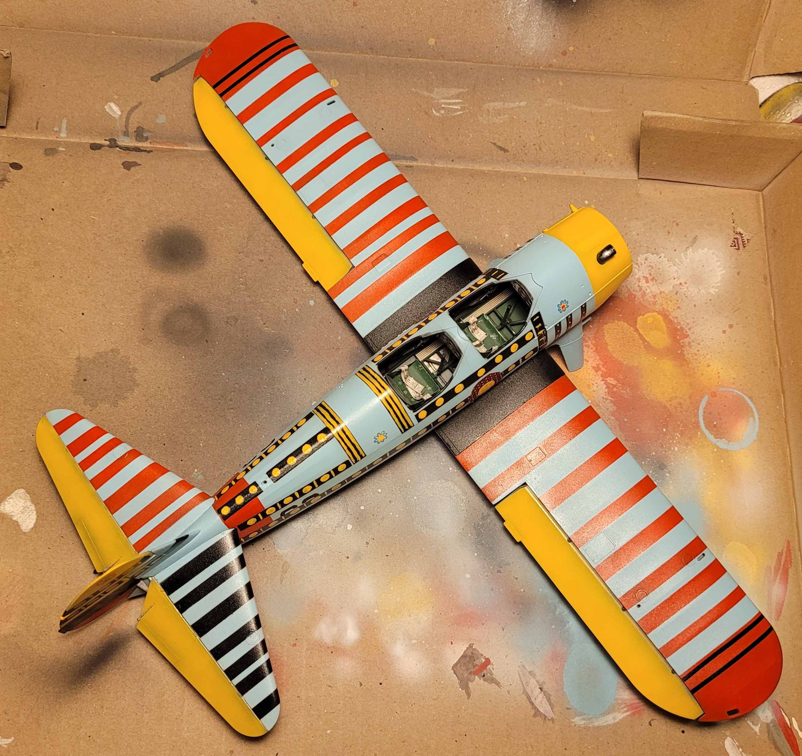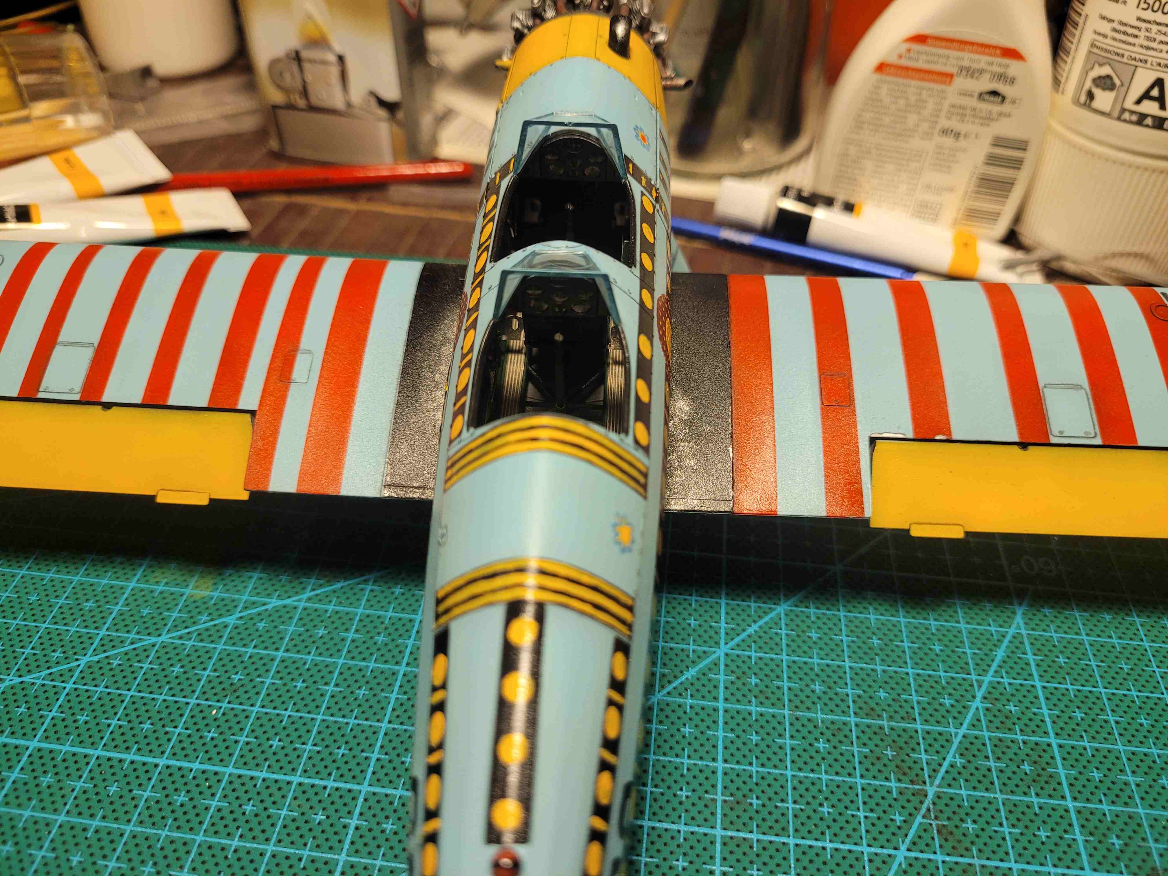 Dazu hab ich dann noch die Cockpitverglasung per Hand bemalt und angebaut. (leider ohne Foto)