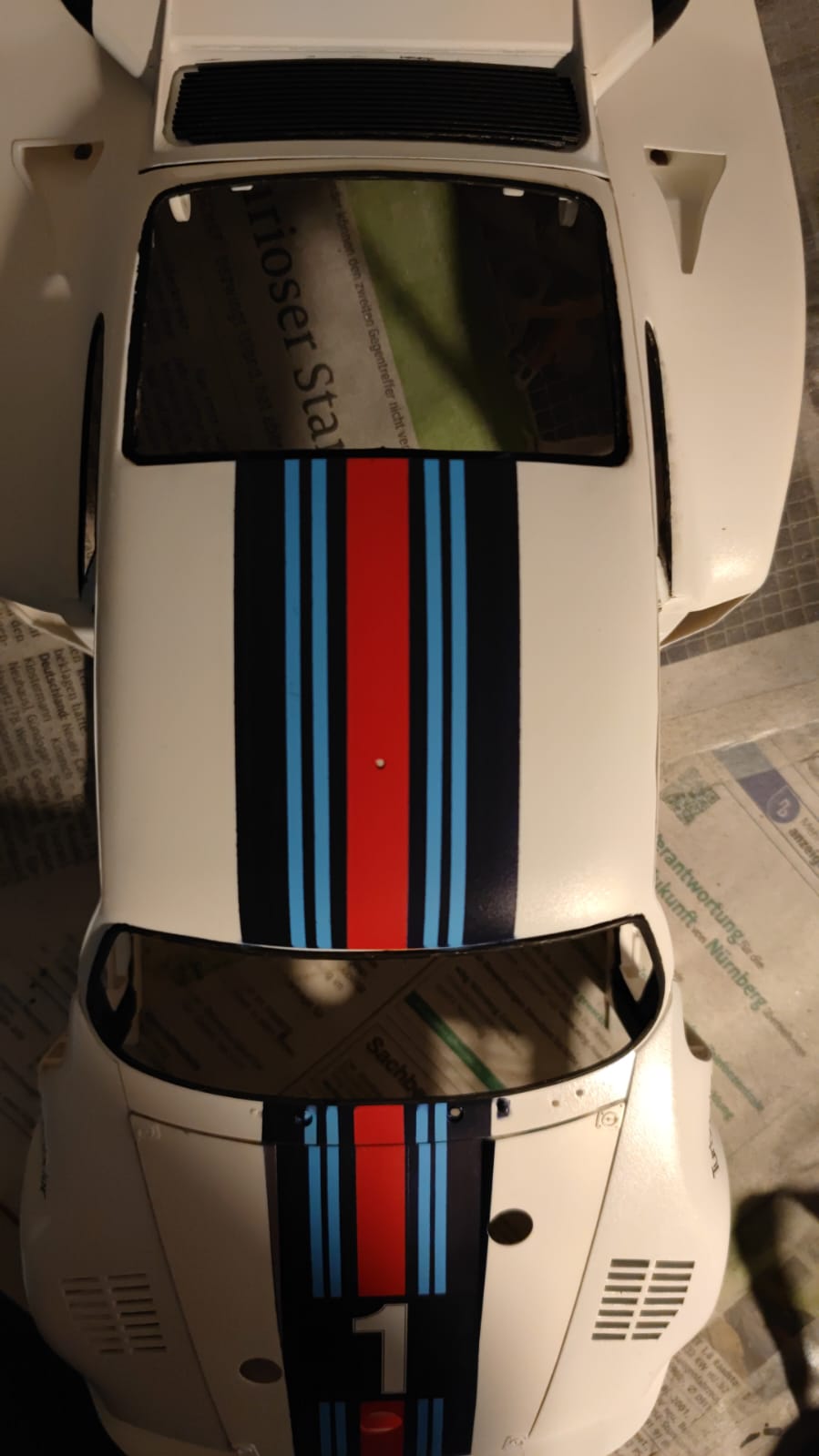 Nachdem sich meine Glücksgefühle wieder gelegt haben, habe ich dann den mittleren Bereich abgeklebt um Platz für die Startnummer 1 zu machen.