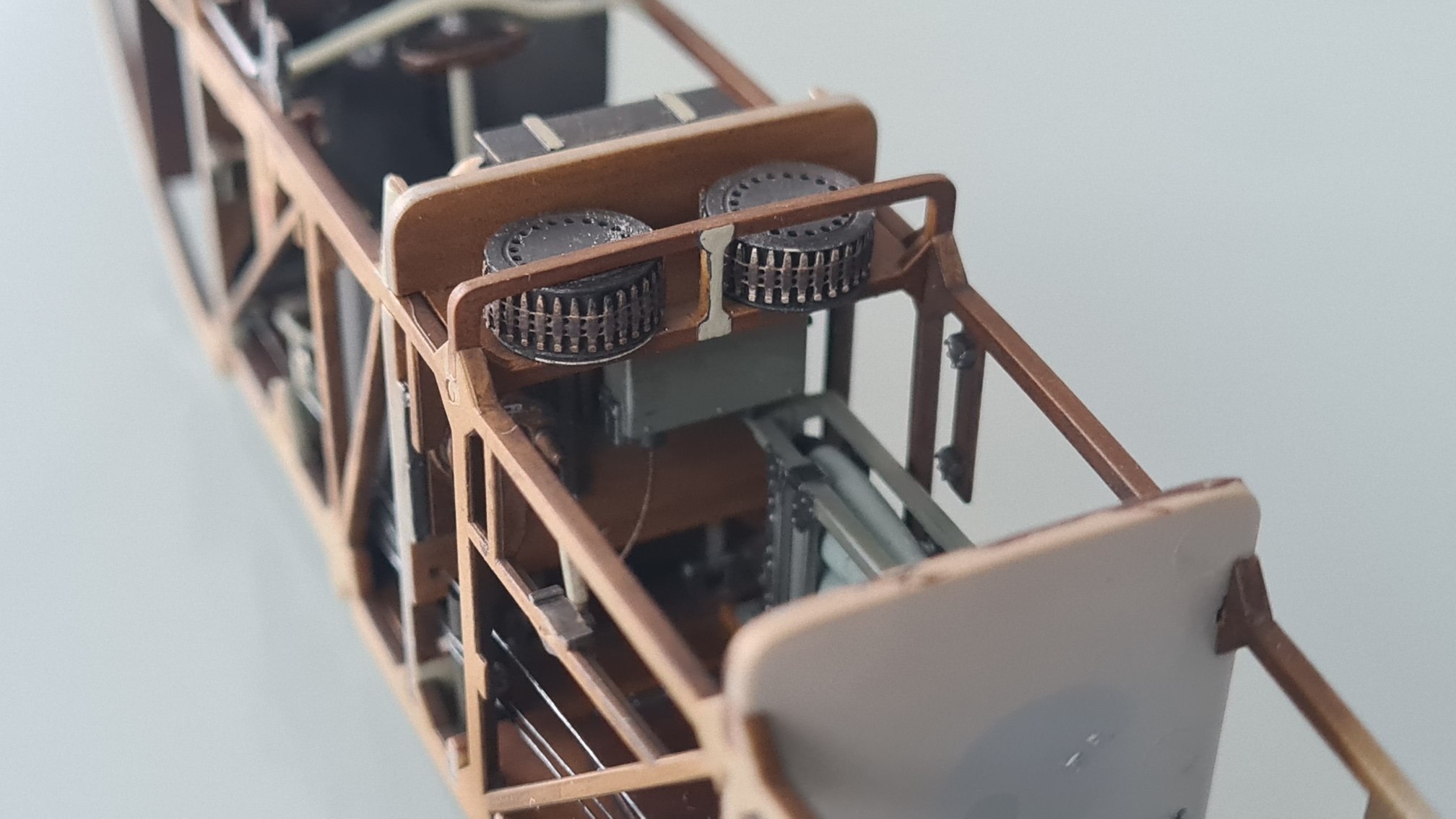 Der Rest wurde trockengebürstet, Hebelchen haben etwas Gunmetal Farbe per Pinsel bekommen.
