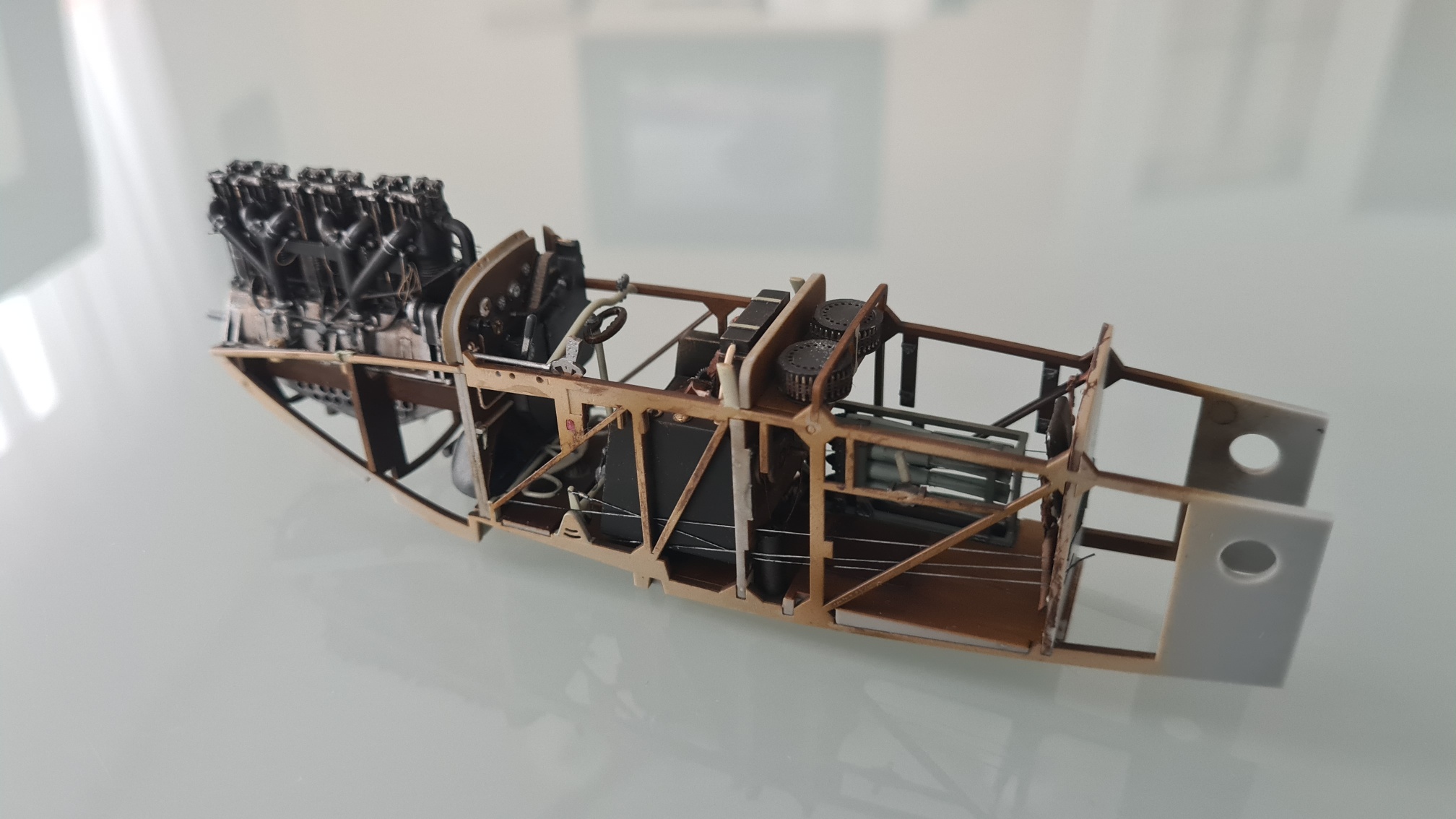 Der Kühlwassertank wurde hinterher noch mit Panelliner schwarz und braun verwittert.
