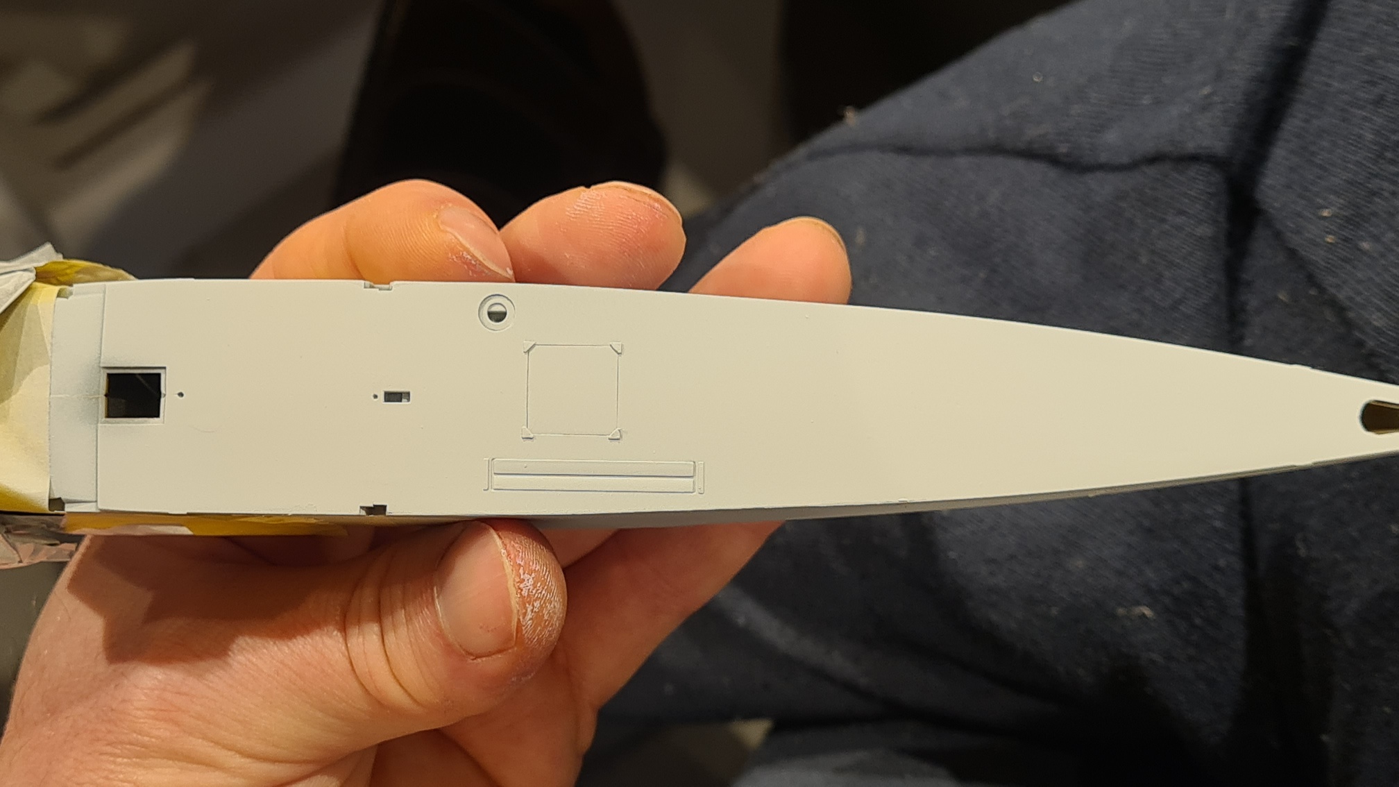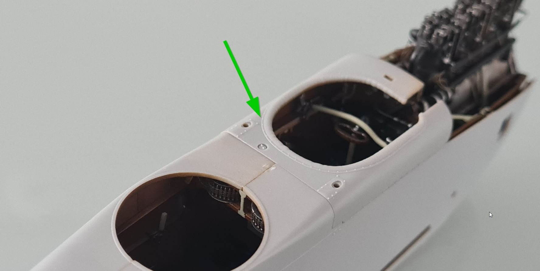 Als nächstes bekommen die "Einstiegslöcher" eine Lederumrandung. Große Decals müssen geklebt werden (davor drücke ich mich gerne). Aber ich denke, zuerst werden die Oberseiten der Flügel gesprüht.