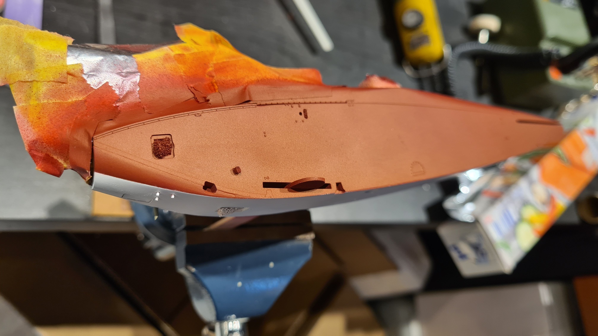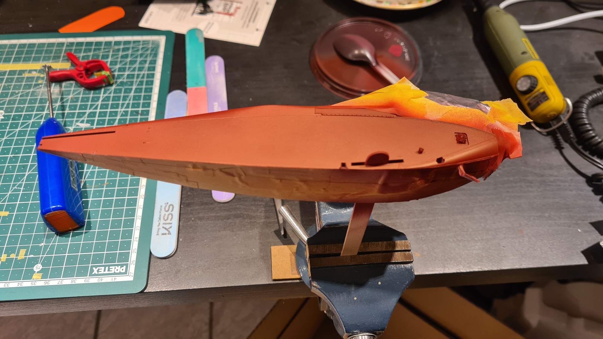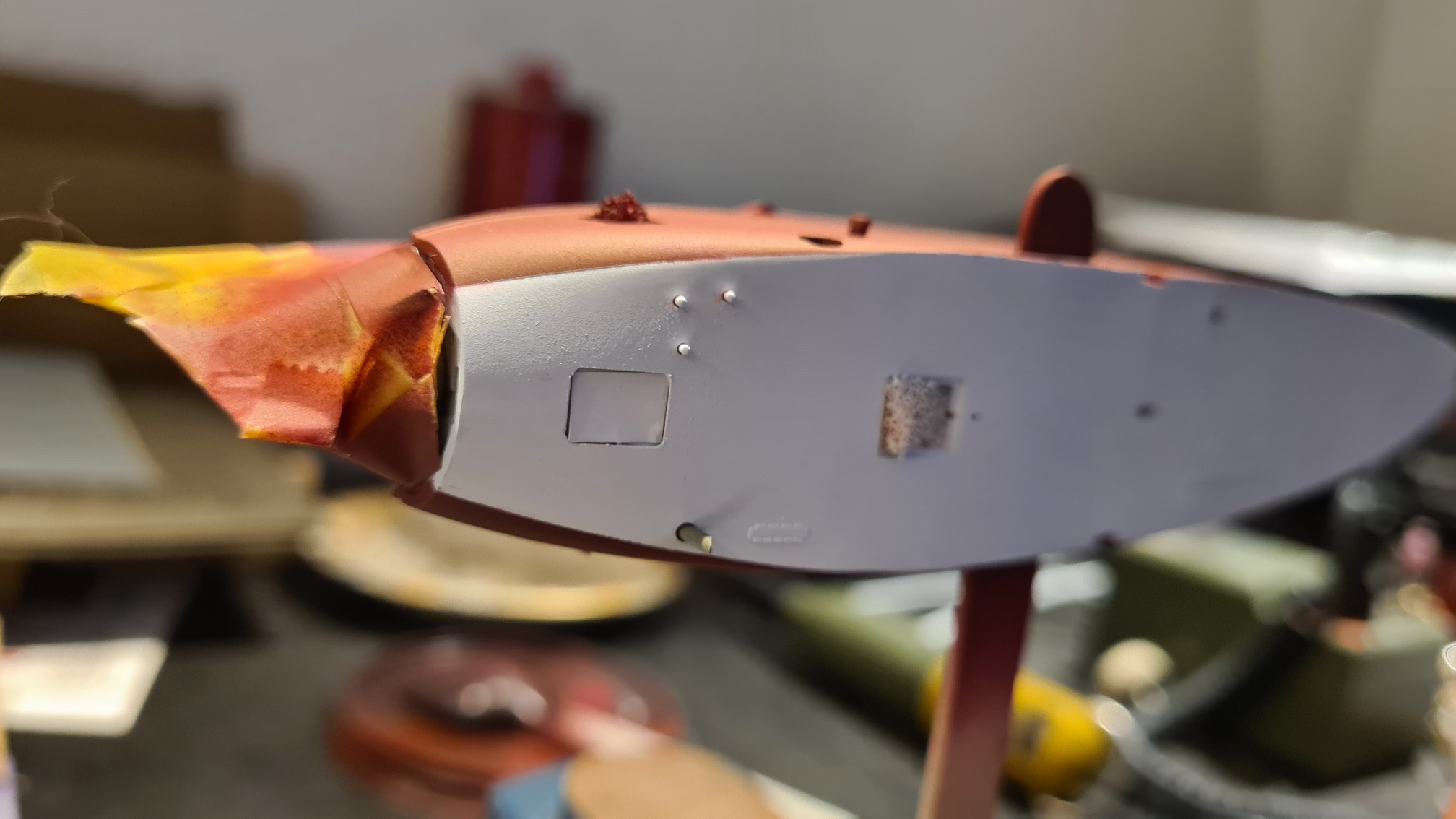 Ich musste es stecken, um das Flugzeug zu sprühen und gleichzeitig das Innere vor dem agressiven Rotbraun zu schützen