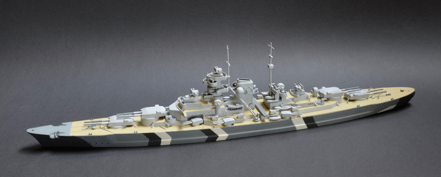 Während der Erprobungs- und Übungsfahrten in der Ostsee erhielt Bismarck die bekannten schwarzen und weissen Streifen über Rumpf und Aufbauten.