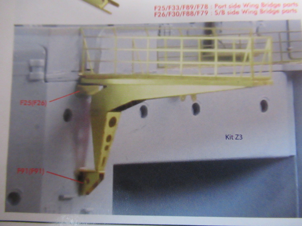 An der Brücke haben wir 2 Ausleger , links und rechts. Diese wären in Plastik vorhanden . Pontos hat hier aber ein paar Ätzteile dazu gelegt .