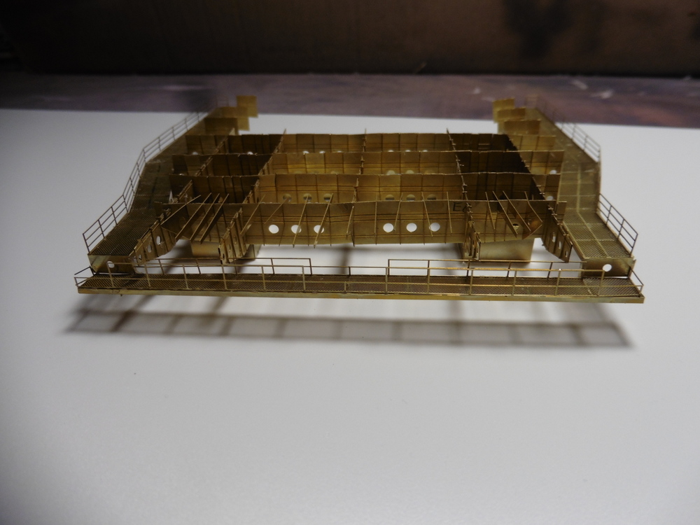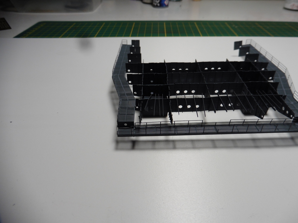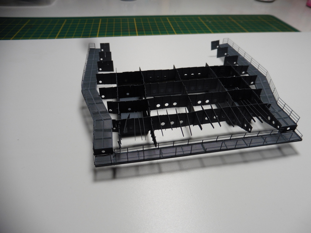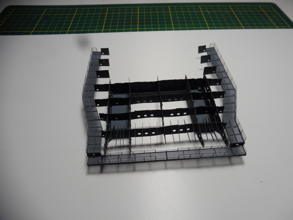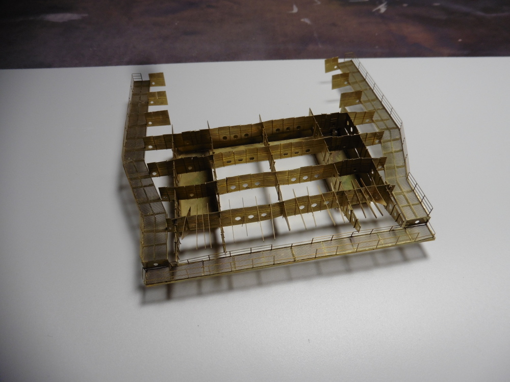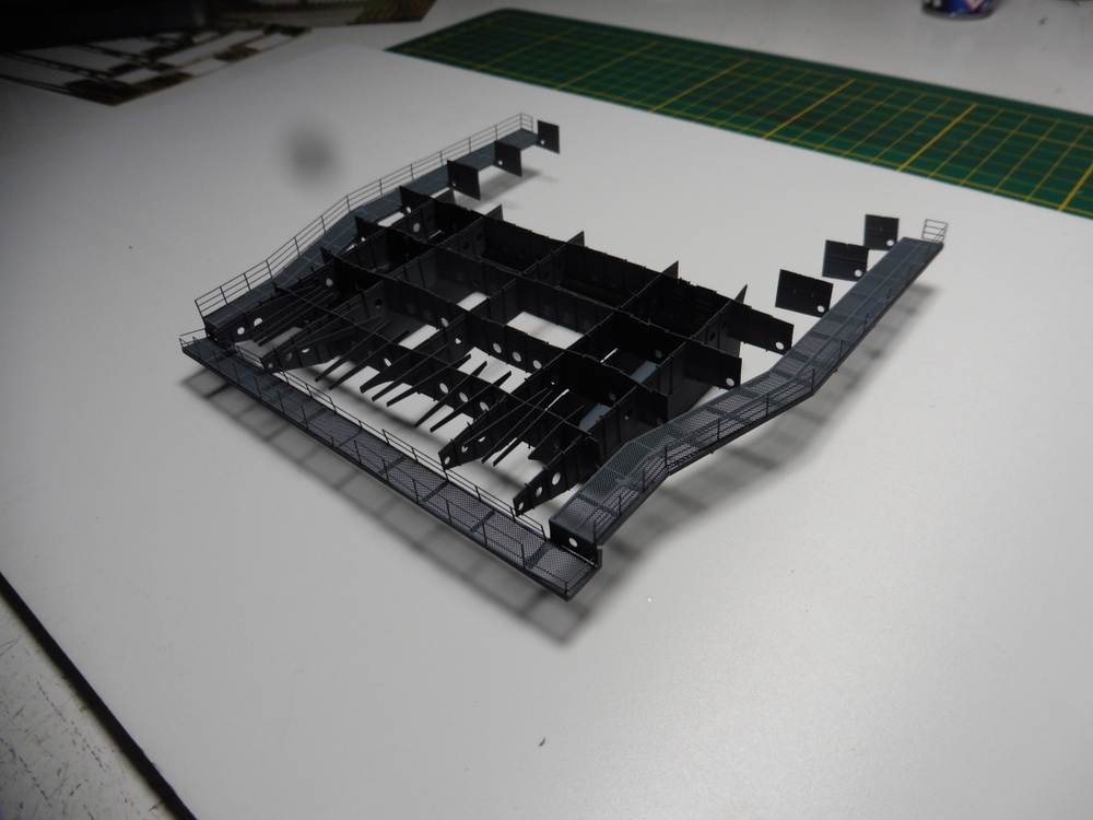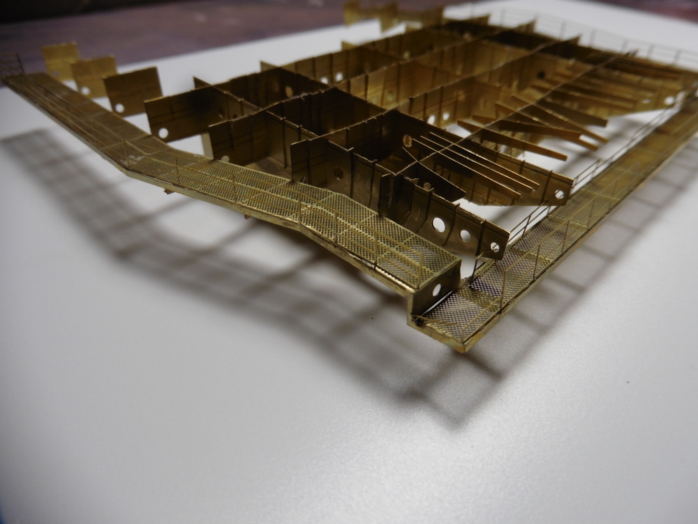 Die großen Quer und Längsträger bestehen aus Ätzteilplatten die in der Mitte gefaltet werden müssen .