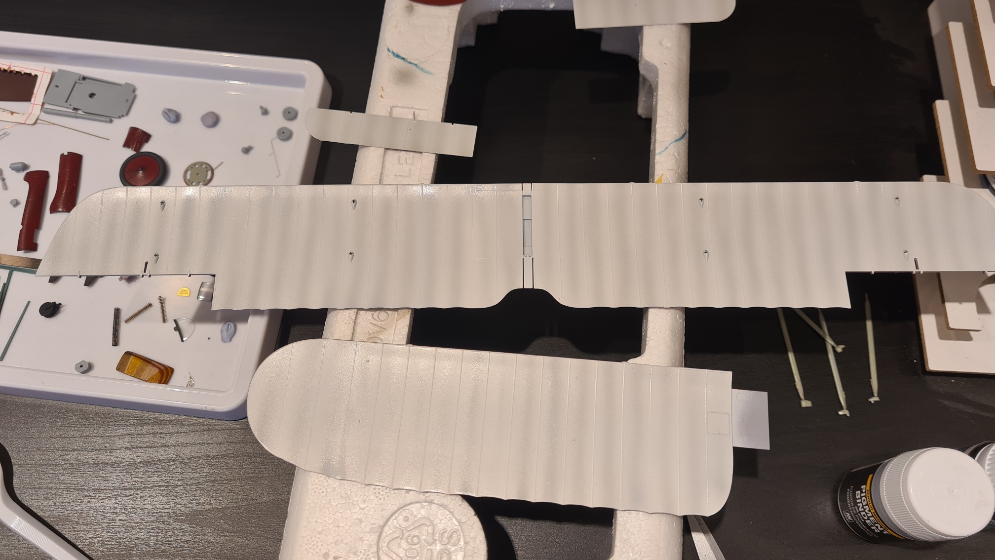 Ich würde heute einfach mal ein paar Bilder von den Tragflächen zeigen. Die sind (wie schon angedeutet) noch nicht fertig, aber haben schon viele Stunden Bearbeitungszeit in Anspruch genommen. Es wird nicht ganz chronologisch sein, aber das sollte niemanden stören.