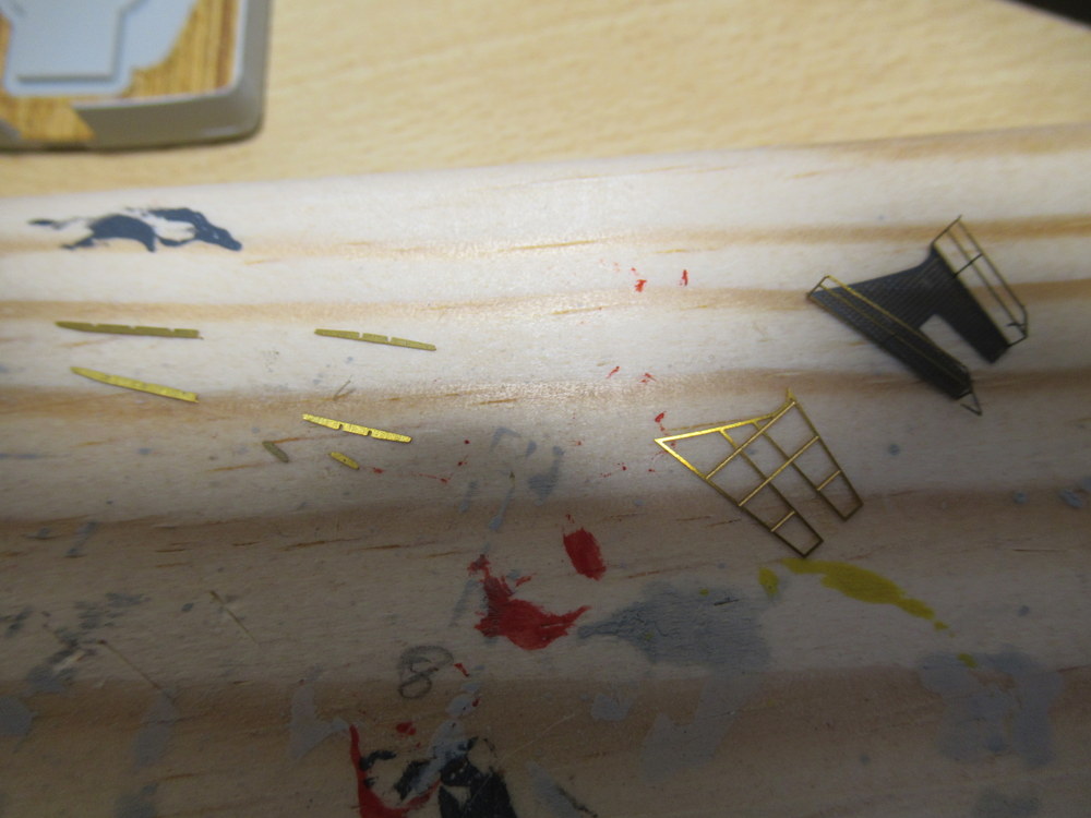 ich habe mal wieder einen Teilabschnitt des vorderen Turms mit Ätzteilen versehen . Wobei mir die kleine Reeling natürlich erst mal in kleine Stücke zerbröselt ist . Hatte aber zum Glück noch genügend alternativen im Schub um das wieder einigermassen hin zu bekommen.