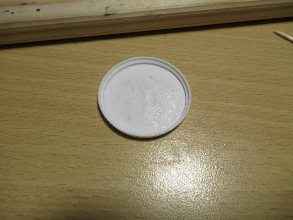 Also den Kleber gebe ich in einen kleinen Deckel