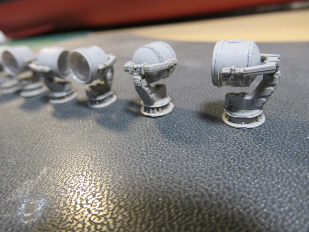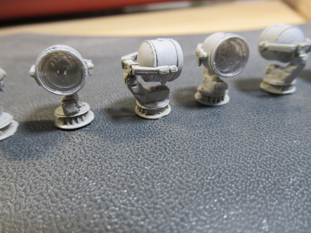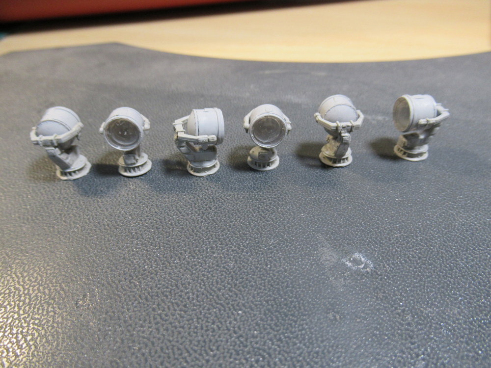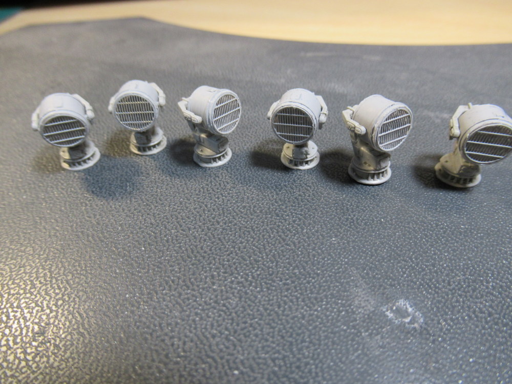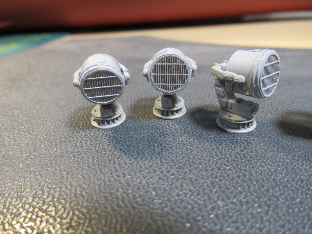 Also hab ich jetzt erst mal alle Scheinwerfer gebaut bemalt und mit Pinwash versehen . Als letztes kam das Schutzgitter dran