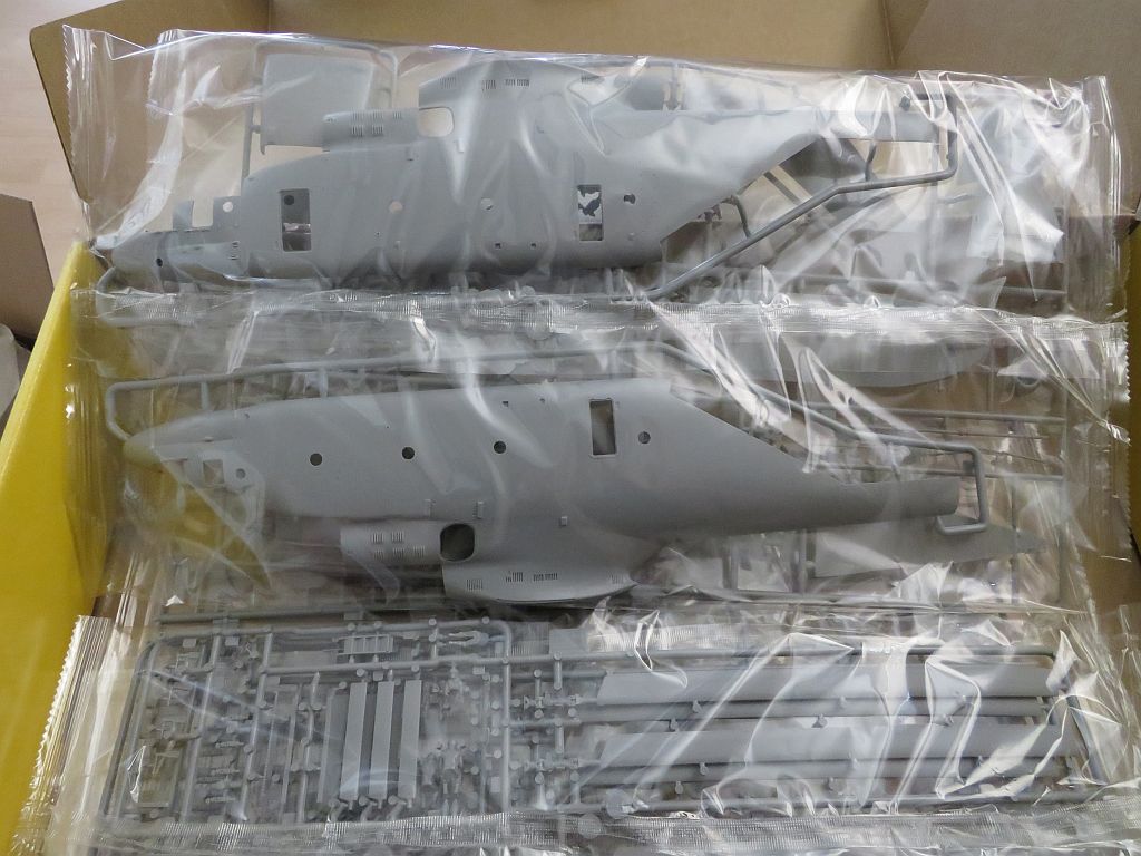 Ich habe kürzlich einen Bericht über Hubschrauber geschaut und wollte danach dieses Riesenteil unbedingt haben. Mit einer Nutzlast von 22 Tonnen, bzw. 68 voll ausgestatteten Fallschirmjägern der größte Serienhubschrauber der Welt. Das Modell hat in 1:72 immerhin beachtliche 55 cm Länge und ca, 45 cm Rotordurchmesser.