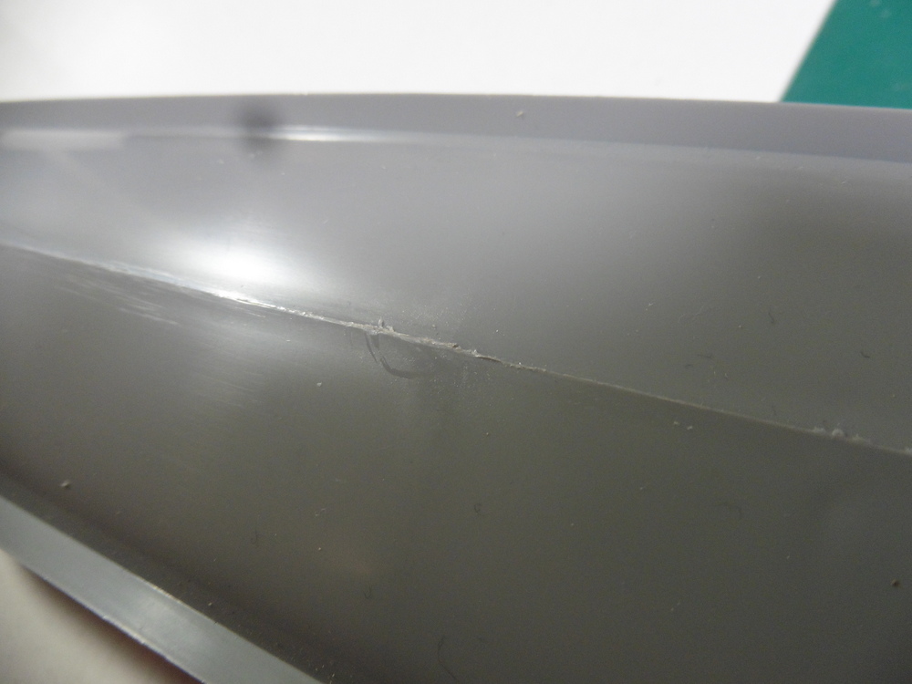 Wie ich es erwartet habe , passt das Ganze zusammen , aber leider nicht ganz korrekt. Die Hälften passen zwar ohne Spalt zusammen , aber am Kiel hat man über die gesamte länge einen Überstand von bis zu 1 mm.