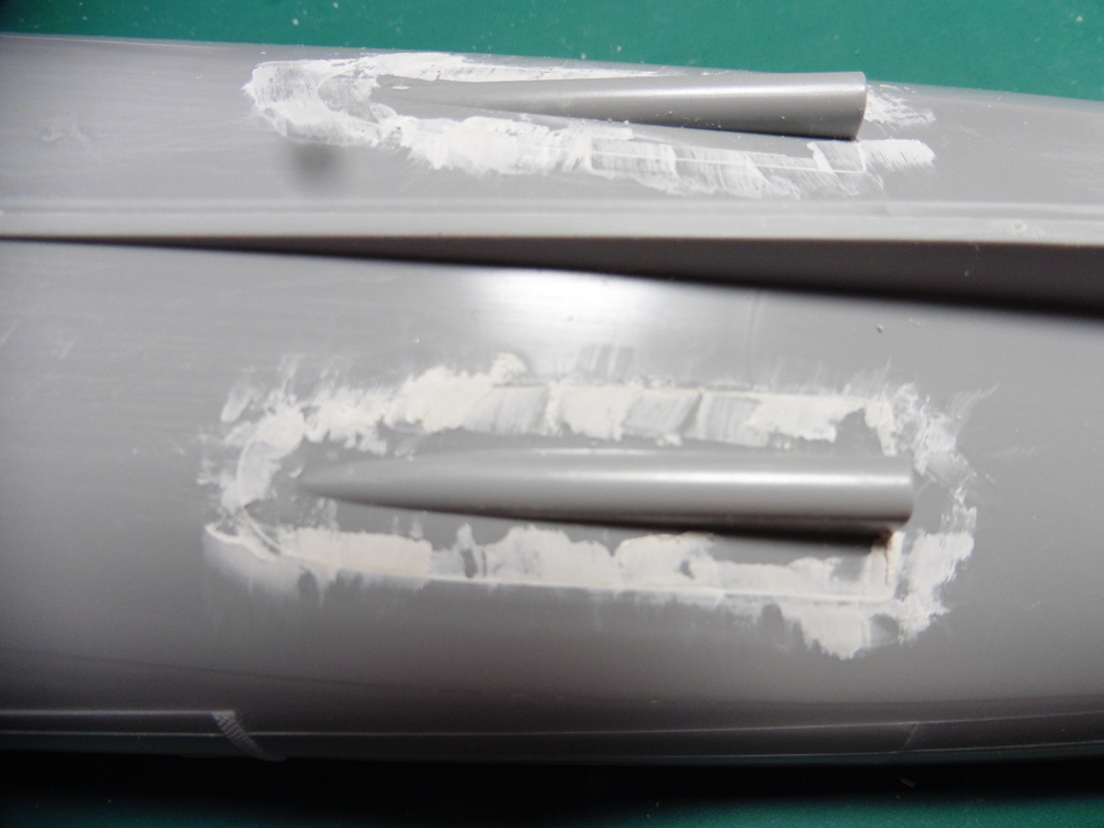 Als nächstes kommen am Heck noch weiter Aufnahmen für die Wellen ,welche auch Verspachtelt werden müssen .