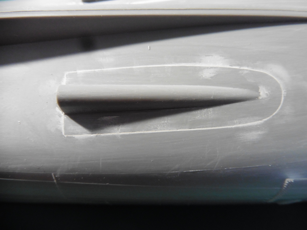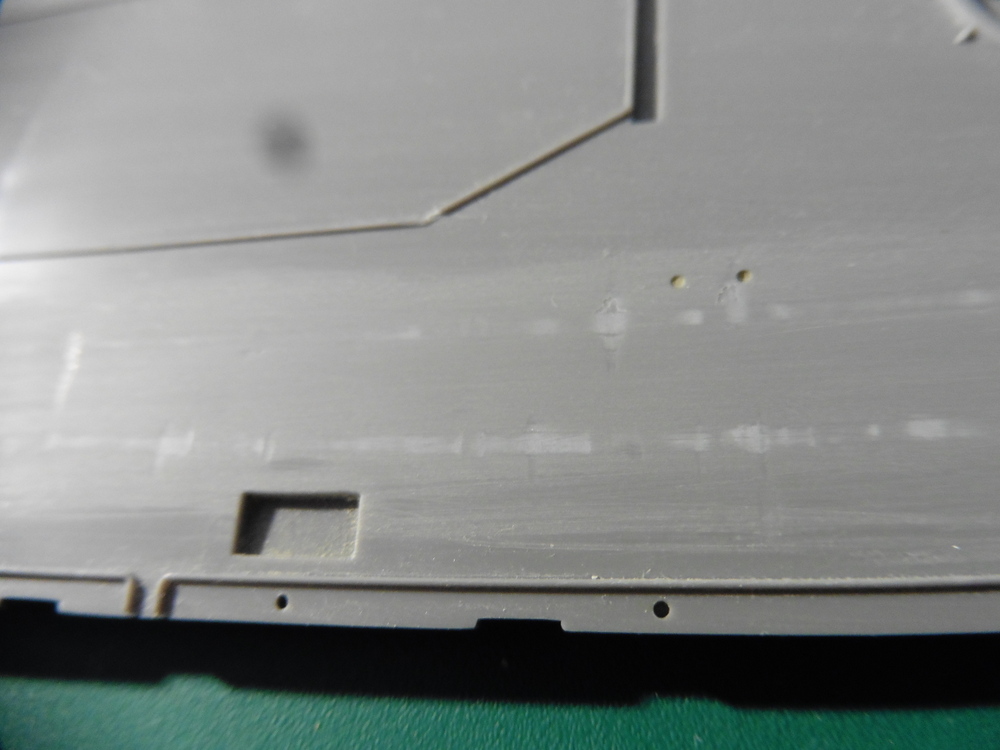 Wie vorher schon geschrieben , Schleifen und Bauteile entfernen . Tja hab ich ja auch gemacht , war aber glaube ich eine blöde Idee . Das Schienensystem für die Minen sollte ja entfernt werden und durch Ätzteile ersetzt werden .