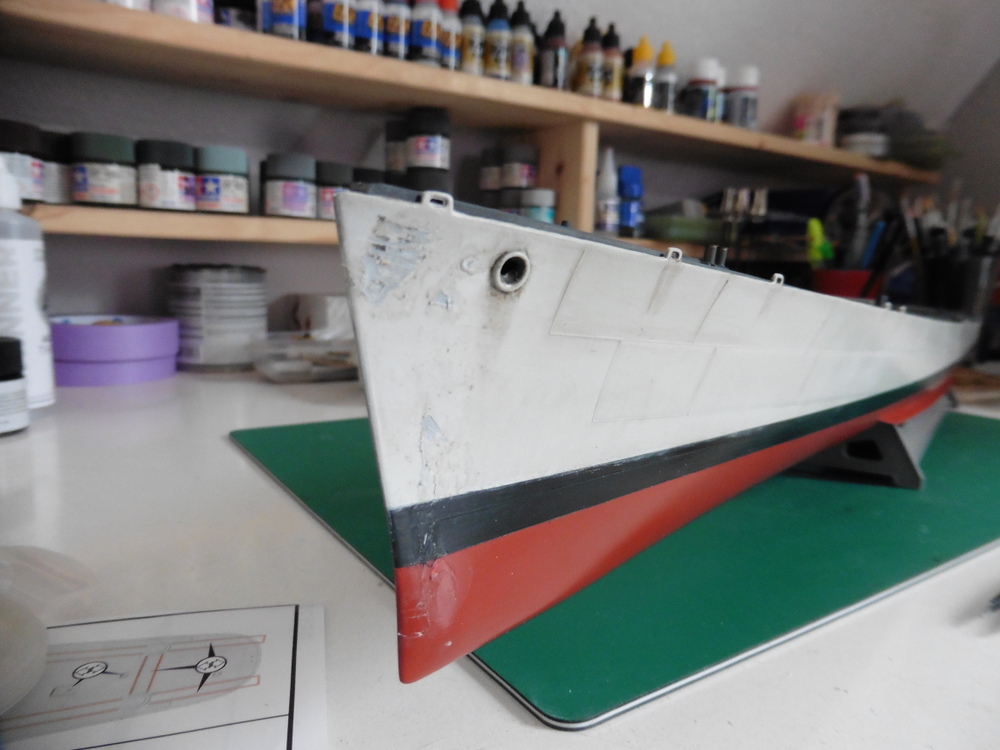 Ich hatte die Lackieung des Rumpfes sowie des Decks soweit fertig .