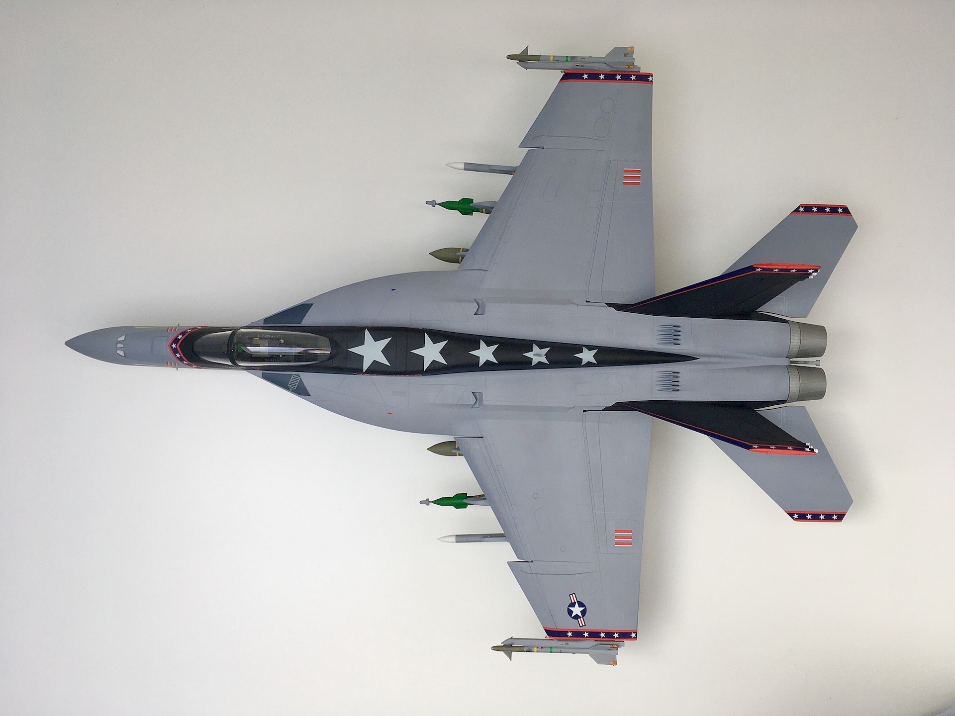 Beim Stern habe ich wohl nicht genau genug aufgepasst. Danke für den Hinweis. Hab gerade nachgesehen, ob mir der Fehler auch beim Twinseater unterlaufen ist. Dort passt es. In den nächsten Tagen werde ich die Fotos von dieser F/A-18E Super Hornet “Black Knights” 1:32 ins Forum stellen.