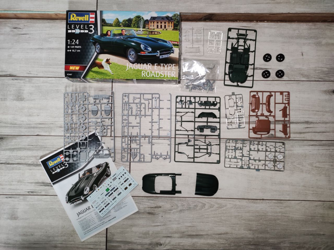 Ein Auto was im Orignal etwas mein Budget übersteigt :lol: Der Jaguar E-Type als Roadstar, eine Königin der Straße, welche nur so vor Eleganz strotzt. Wer so ein Auto besitzt kann wohl voller stolz behaupten: Ich habs geschafft. Auch genau das wird um ehrlich zu sein auf dem Cover des Bausatzes vermittelt. Zugegeben sieht der Junge Mann ein wenig eingebildet aus.