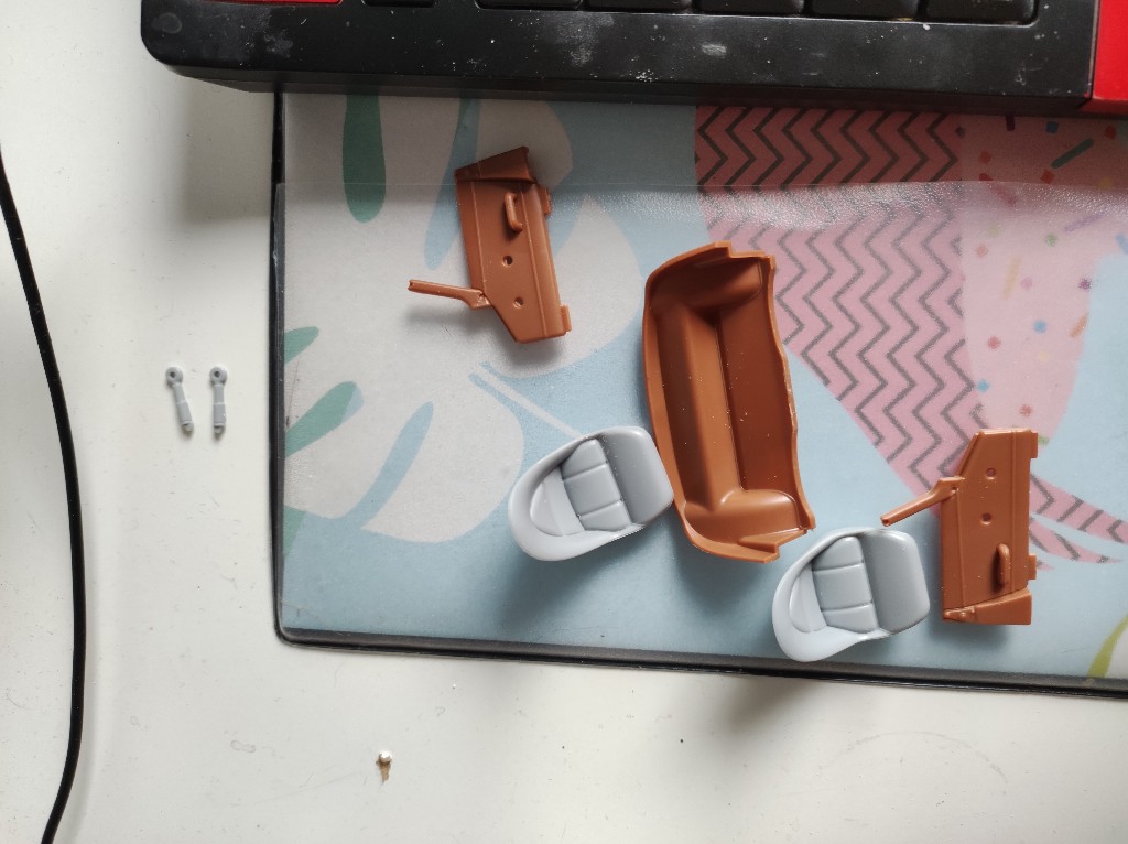 Der Bau hat damit begonnen größere Teile für die Lackierung abzutrennen und vor zu sortieren. Dabei gab's natürlich folgende Haufen: Karosserie