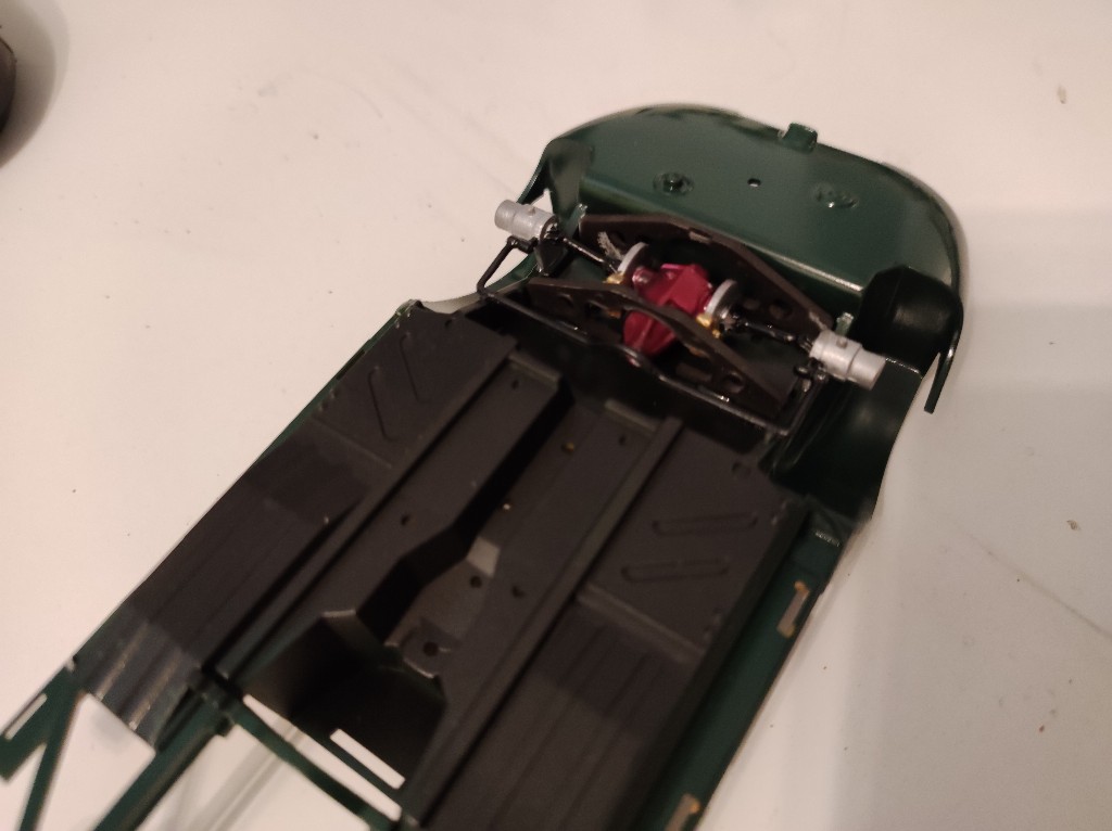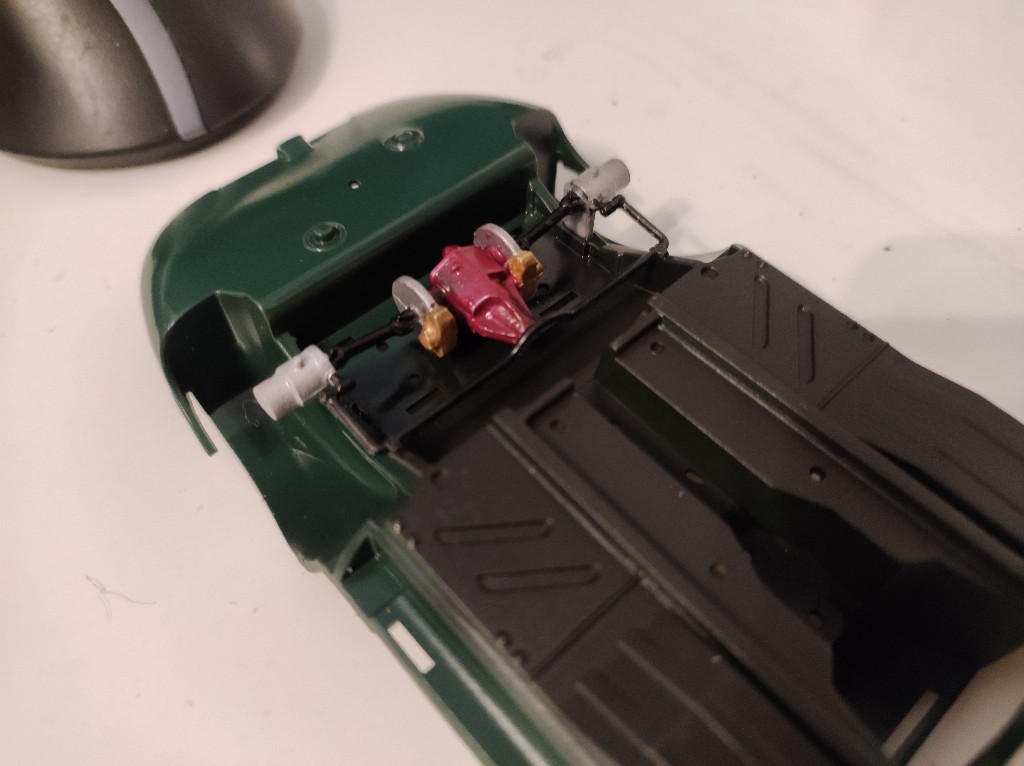 Exemplarisch ein paar Teile. Natürlich muss mit Pinsel noch mehr gemacht werden. Das Racinggreen entstand übrigen aus 50% Deep Green von Ammo of MiG und 50% schwarz. Ich denke ich hab es gut getroffen.