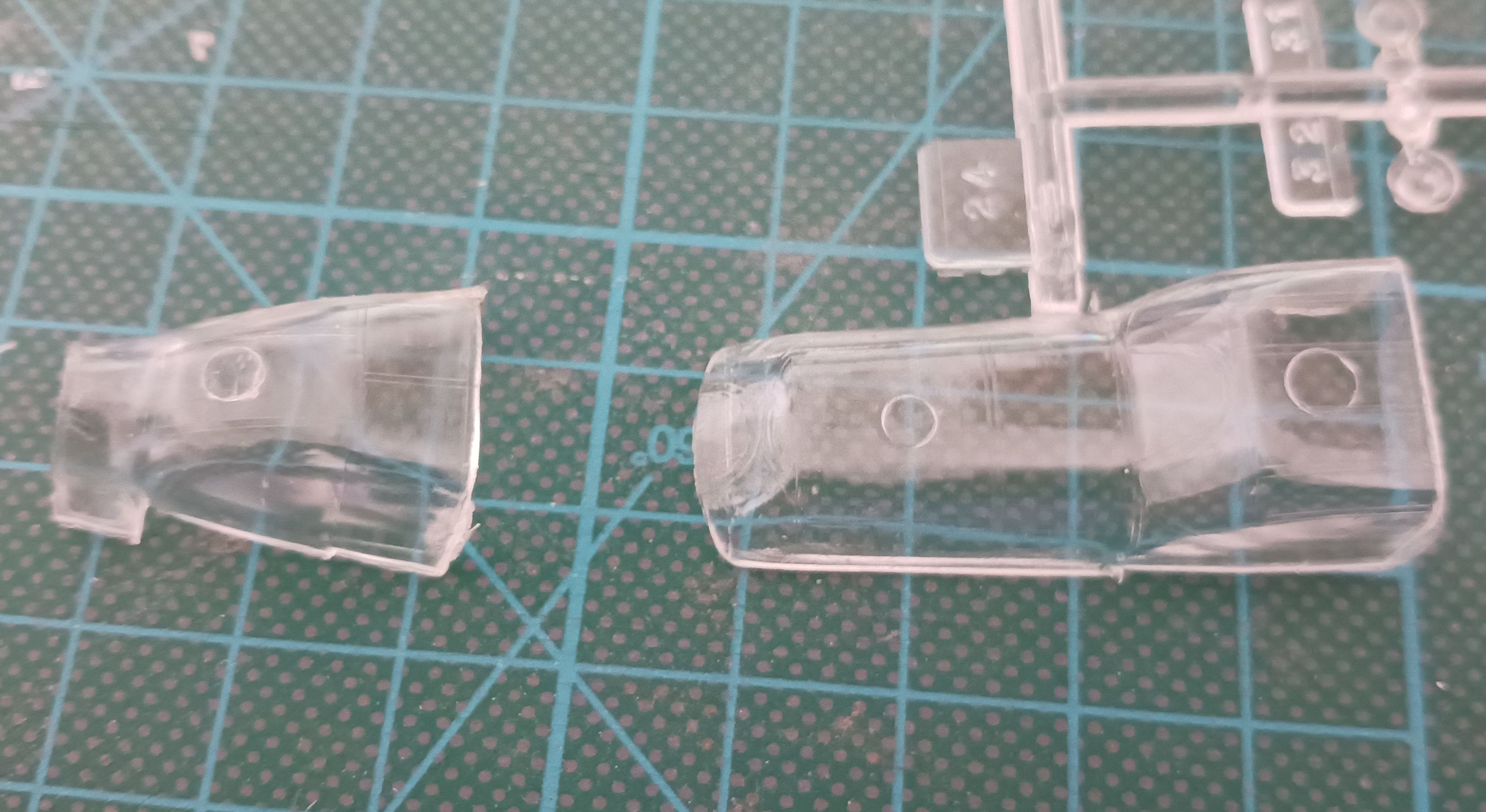 Endlich habe ich mal wieder Zeit zum Basteln gefunden. Nun, wie versprochen, der Kurzbericht zur Entfernung der Auswerfermarken in der Cockpitverglasung der P-61. Für diesen Test habe ich mich für die Rückwärtige Kanzel entschieden. Zum einen war hier die Auswerfermarke am deutlichsten zu sehen, zum anderen wäre ein Scheitern hinten eher zu verkraften, als vorne.