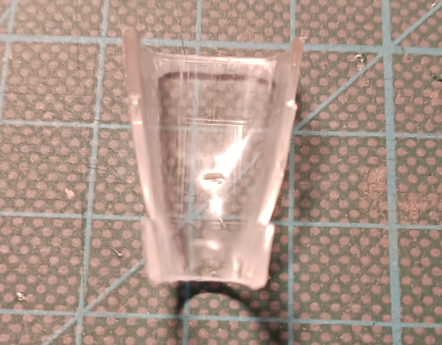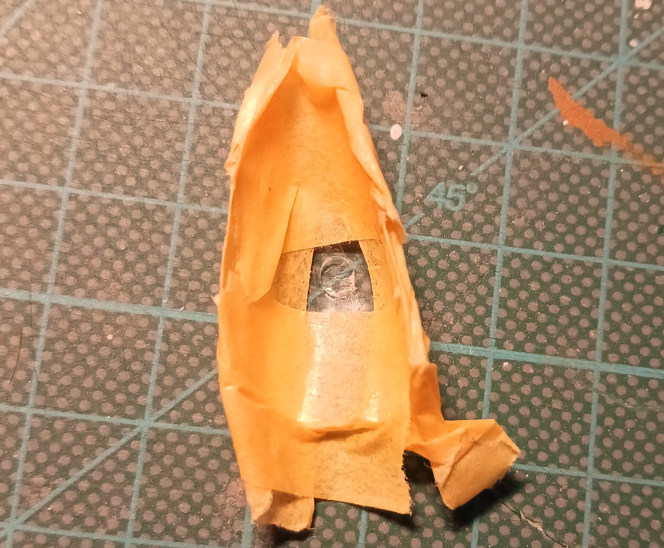 Mit dem Glasfaserstift kam ich gut in die enge Verglasung rein. Zu einem gewissen Grad konnte ich auch die Auswerfermarke wegschleifen, aber nicht ganz. Das Klebeband löste sich an den Rändern ab, also habe ich es entfernt.