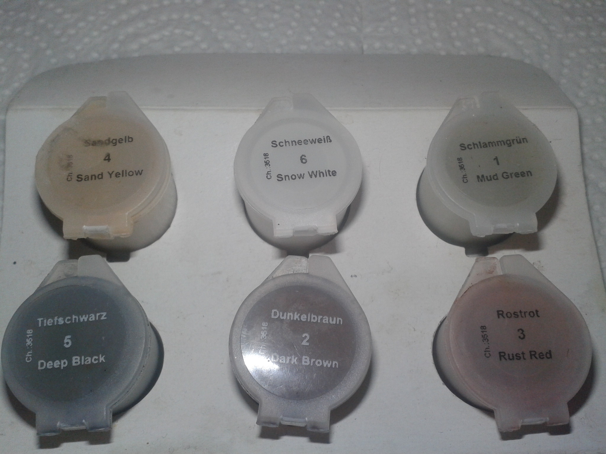 Das Revell Set hat 6 Pigmente die als feines Pulver in einzelnen