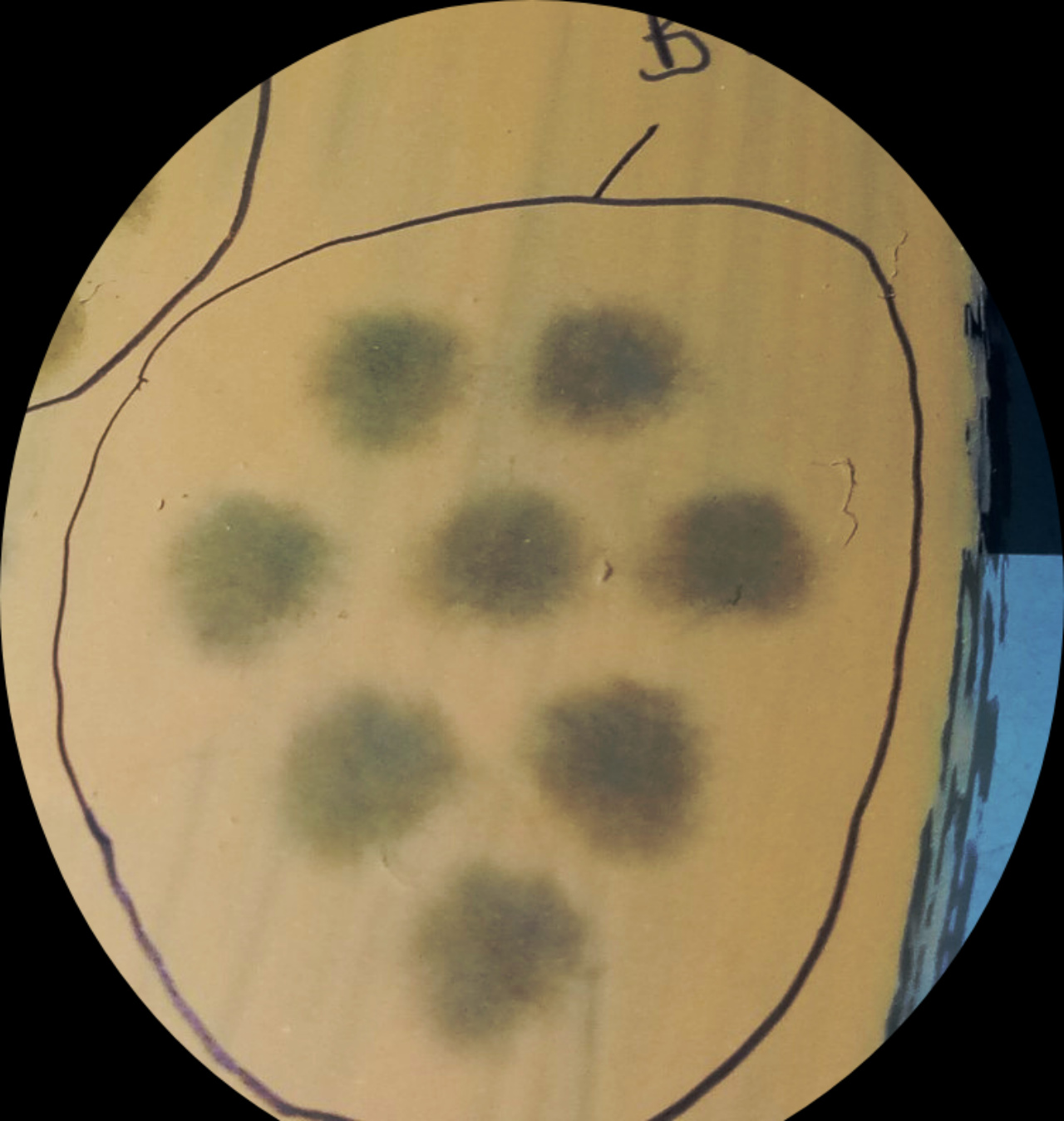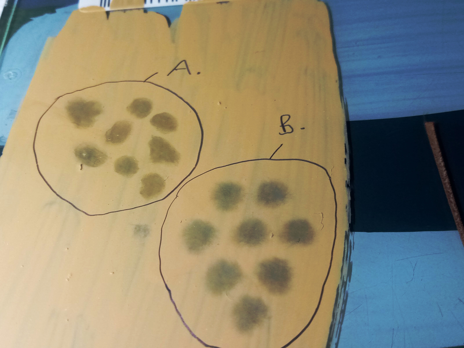 Bei Versuch B. habe ich dazu einen gestutzen Pinsel benutzt.