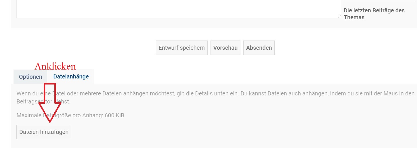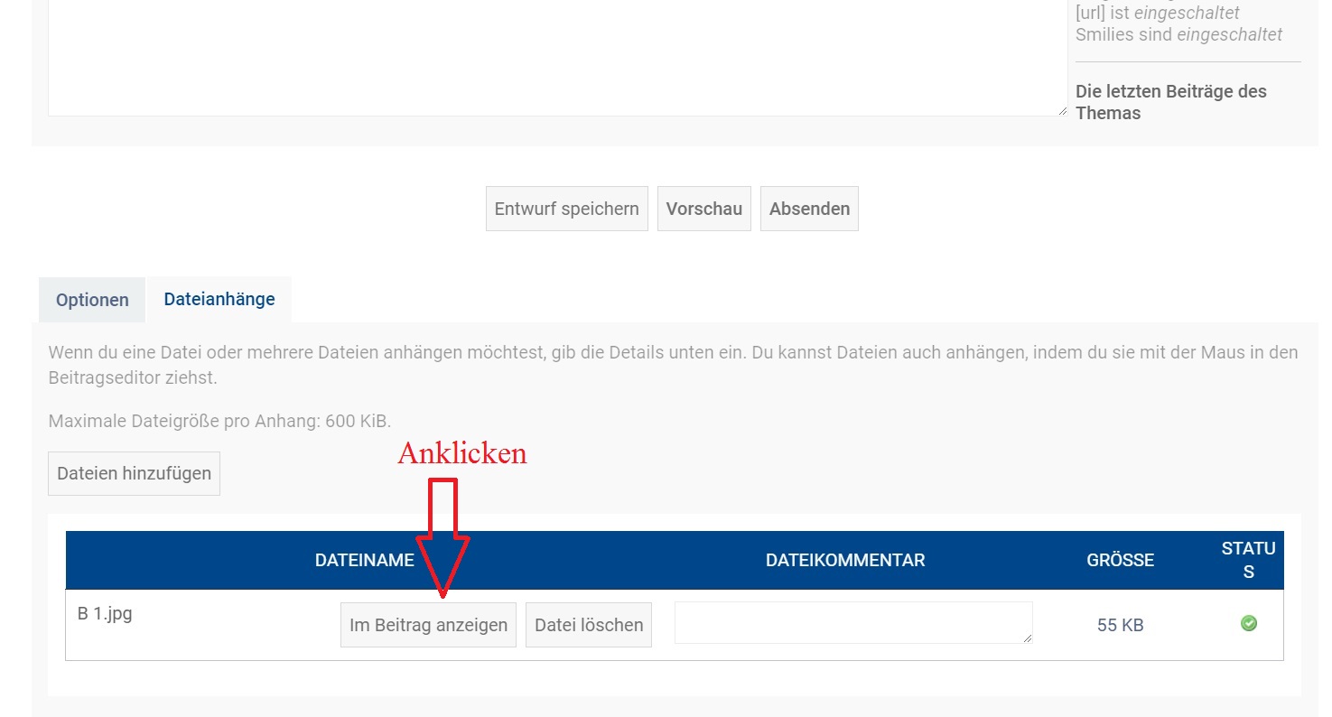 Dann musst du sie natürlich verkleinern. Erlaubte Dateigröße ist - wie angegeben - 600kB, maximale Bildgröße glaube ich 800 * 800 Pixel. Wobei auch größere Bilder gehen, die werden dann automatisch vom Forum skaliert.