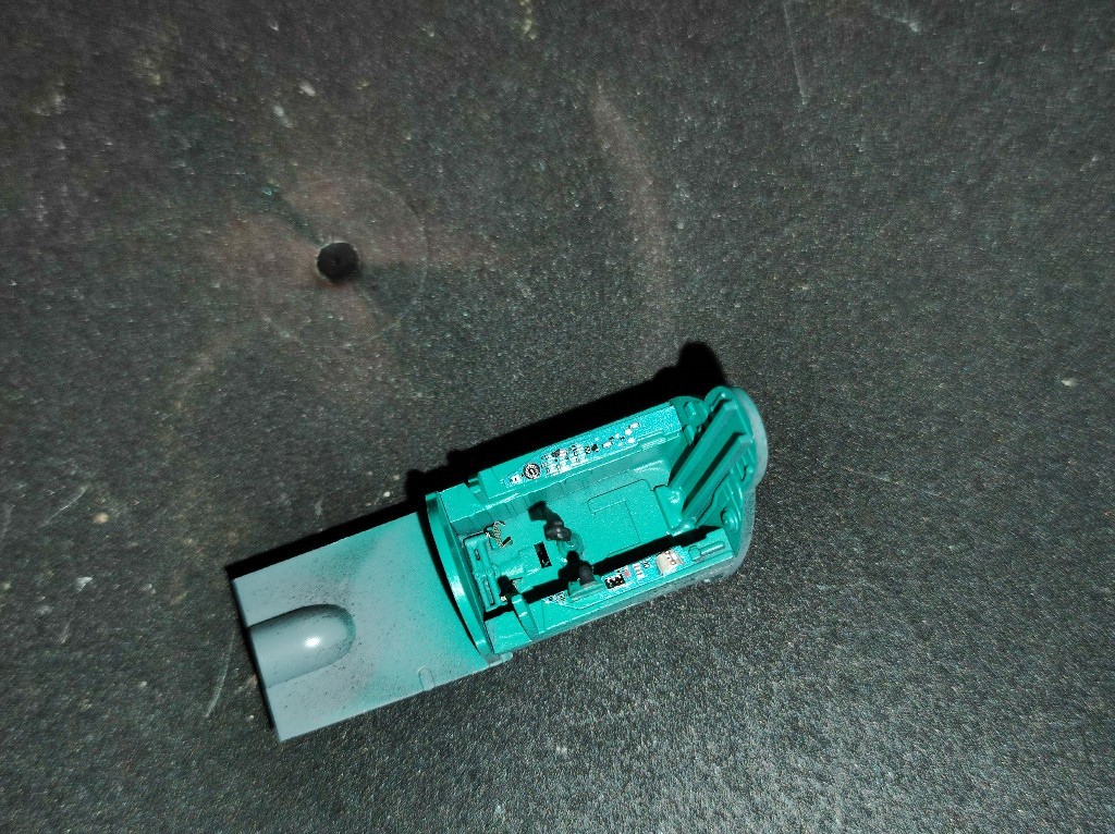 Zunächst habe ich die Einzelteile lackiert. Sprich das Cockpit, Fahrwerksschacht und Triebwerk.