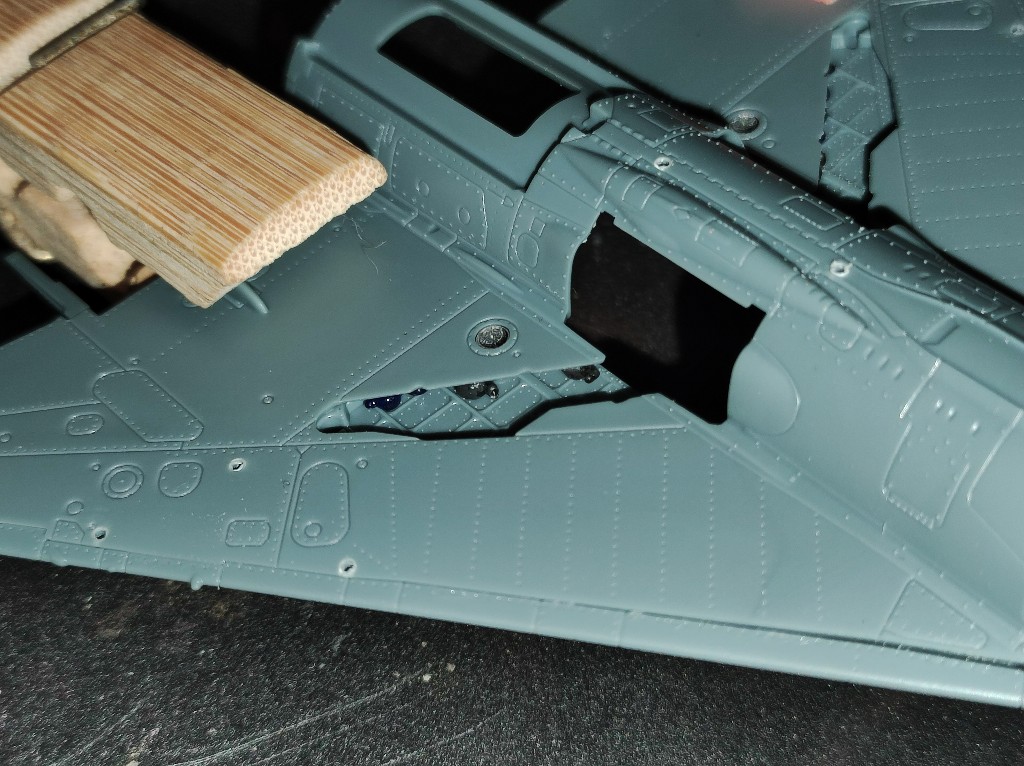 Und wie es schon zu sehen ist, habe ich die Flügeloberseite eingesetzt