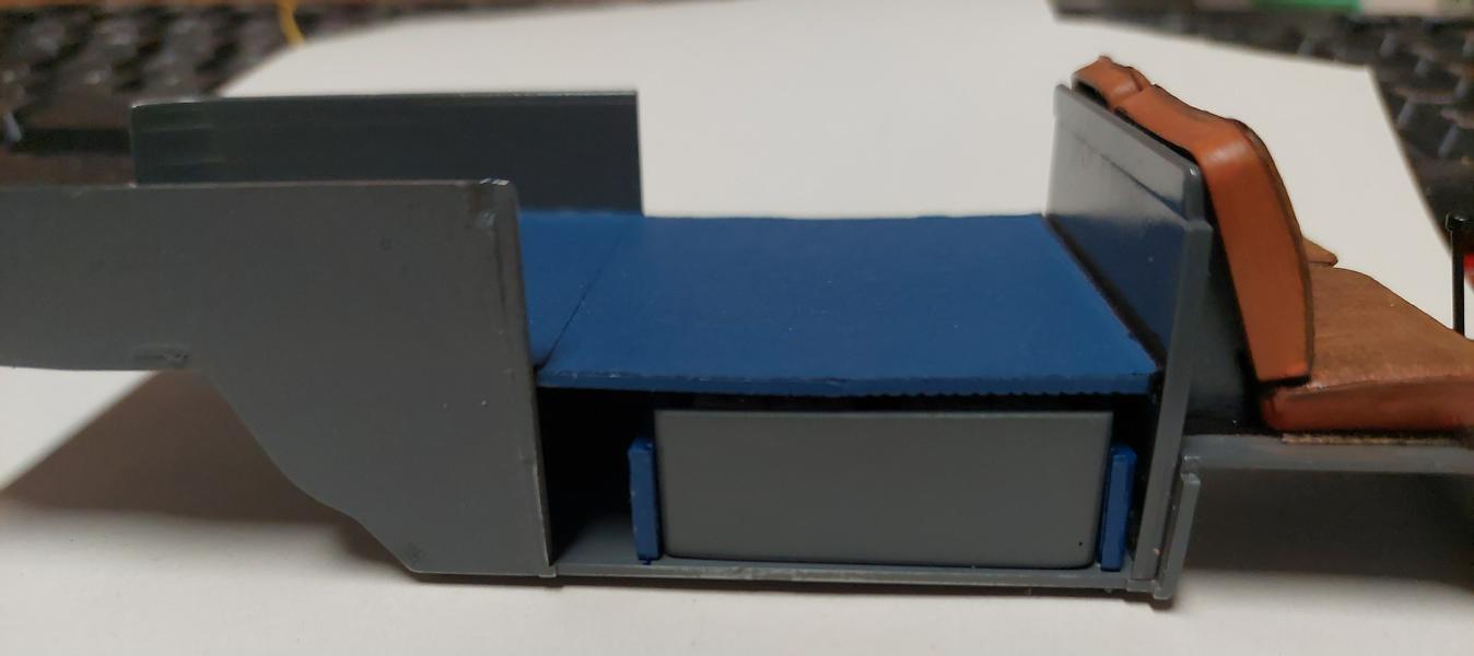 Das Armaturenbrett wurde minimal "angepasst" und um ein Instrument "ergänzt". Die Bedienknöpfe und Kontrollleuchten sind noch nicht gemalt.