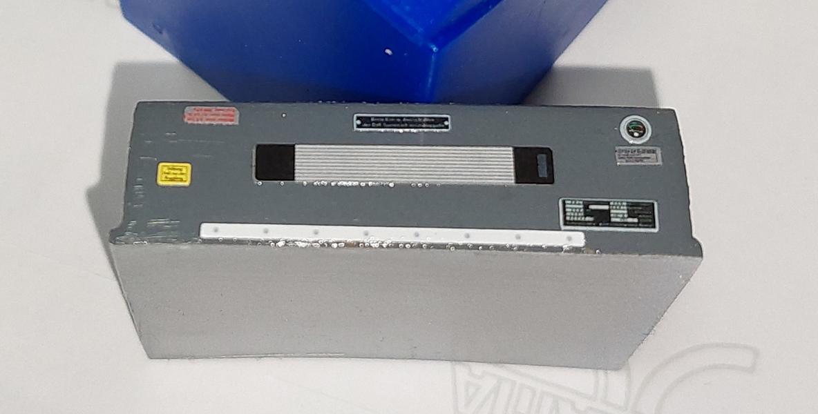 Der Kasten wurde dann auch #77 grau mit Klarlack und wichtigen "Warnhinweisen" aus Sticker und Decals versehen.