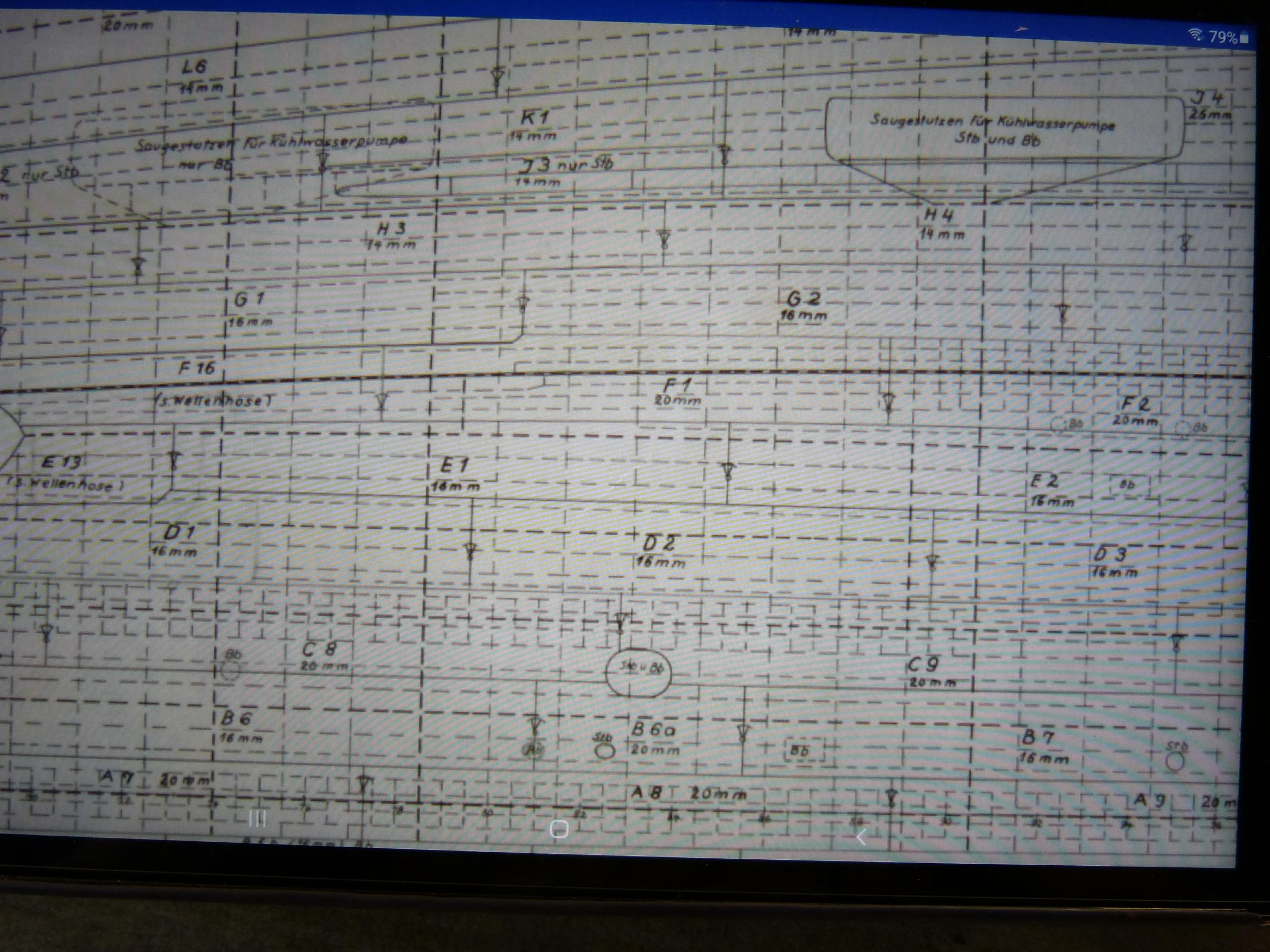 Auch auf GU-Originalfotos nix zu sehen. Einfach wie bei SH ausführen? Waren immerhin Schwesterschiffe. Nun, das waren BS und TP auch, aber dort waren die KWE unterschiedlich ausgeführt. Da brachte mich ein guter Freund auf den Gedanken, schau doch mal im Bundesarchiv. Da gibt es viel hochauflösendes Planmaterial zum Download. Gesagt – getan. Hier wurde ich tatsächlich fündig, und zwar Dokument RM_25_15781 „Plattenabwicklung der Außenhaut“.