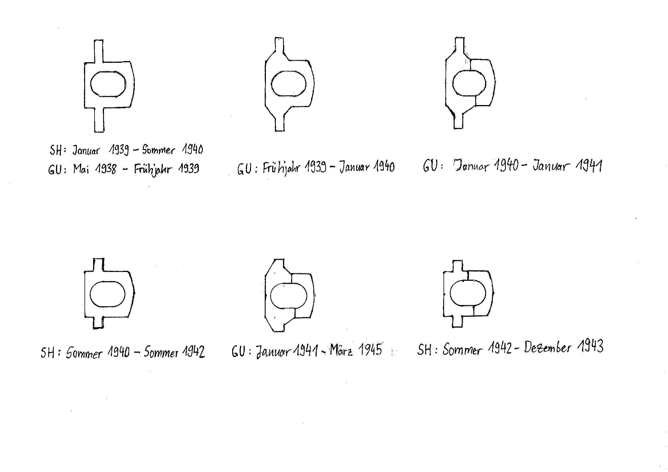 - Vorderer Aufbau nahezu gleich, GU schon ab Januar 40 geschlossene Brücke (jedoch lange Nocken), SH erst ab Sommer 42.