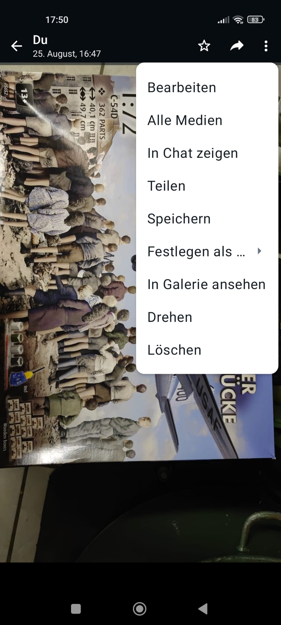 Ich gehe in die WhatsApp Gruppe, mache von dort aus das Bild und dann....