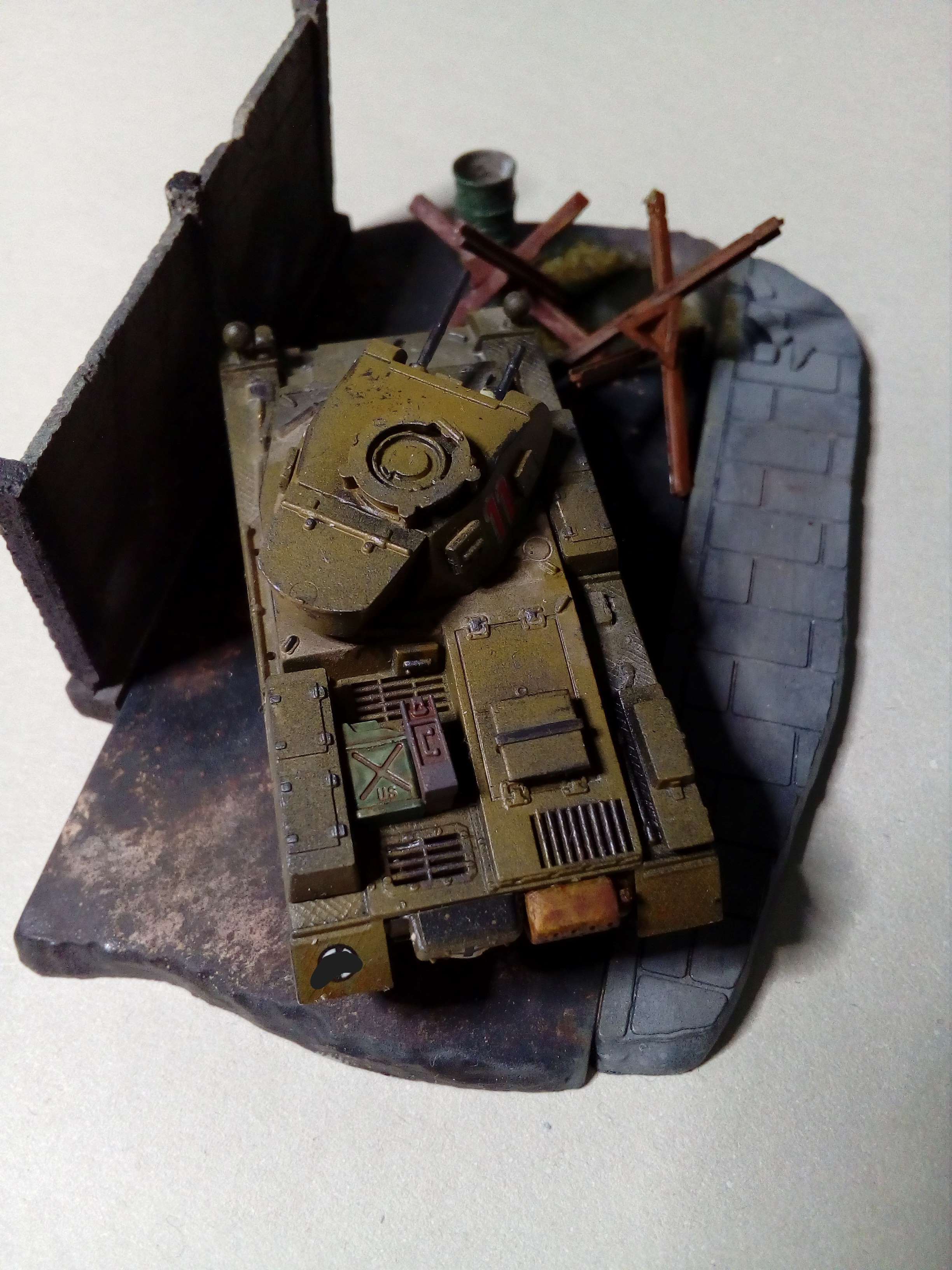 Panzersperren und Ölfaß aus der Restekiste und dass Mauerstück von einem unbekannten Hersteller
