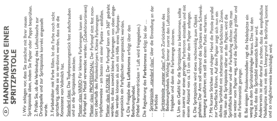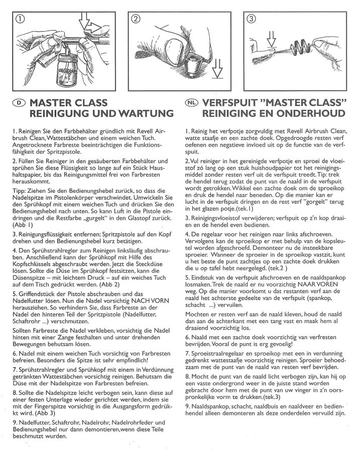Mal eine Frage zu der Gun Master Class Vario, die ich mir gegönnt habe. Ich vermisse eine " Bedienungsanleitung " für die Gun. Es liegt nur eine allgemeine Lackieanleitung bei. Anfrage bei Revell hat auch nichts gebracht, die wußten noch nicht mal was für Düsen in der Gun verbaut sind. Kennt die jemand und oder arbeitet jemand damit?
