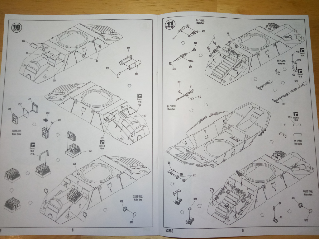 Der Bausatz kommt mit 352 Einzelteilen, aufgeteilt auf 8 Spritzrahmen und eine PE-Platine daher.