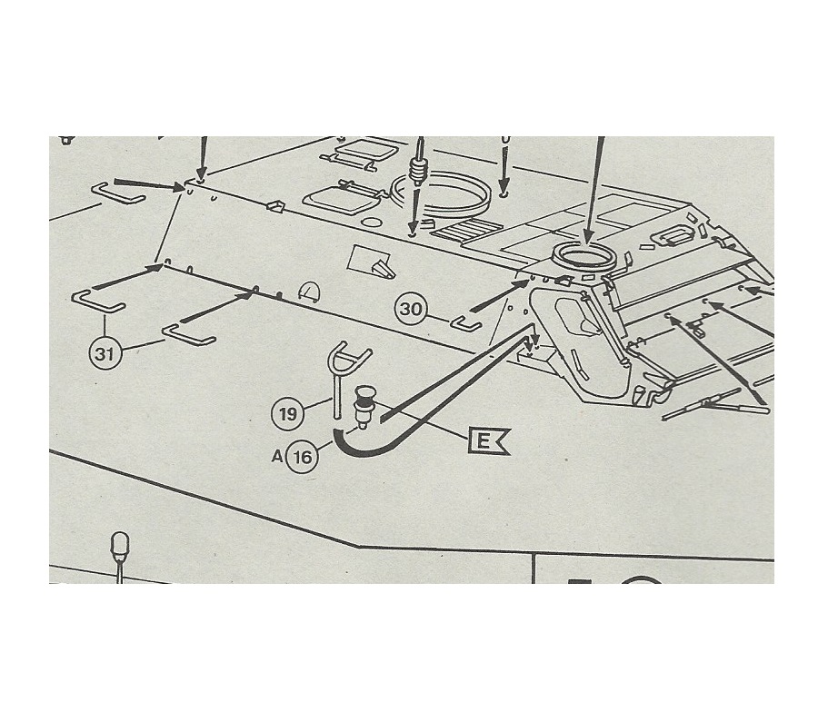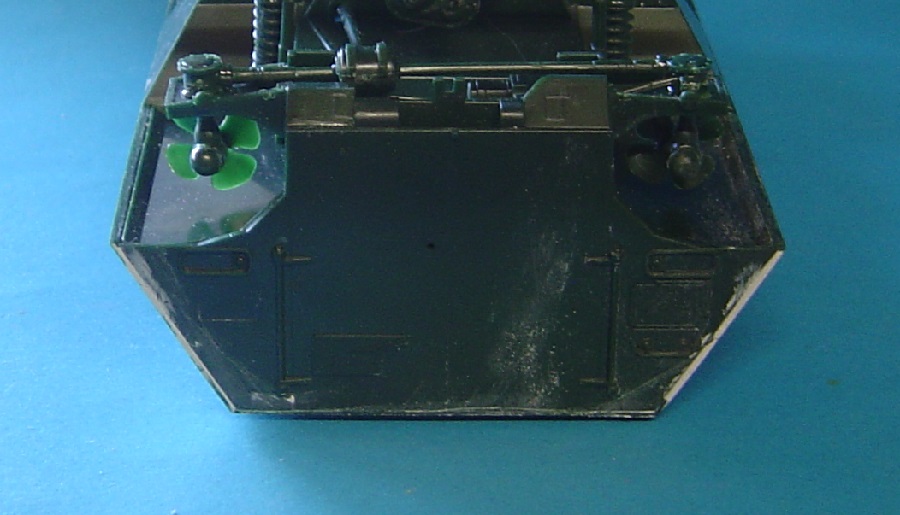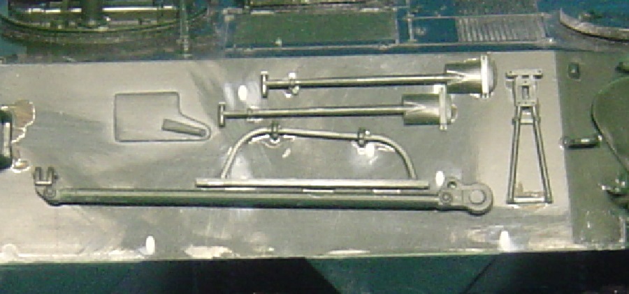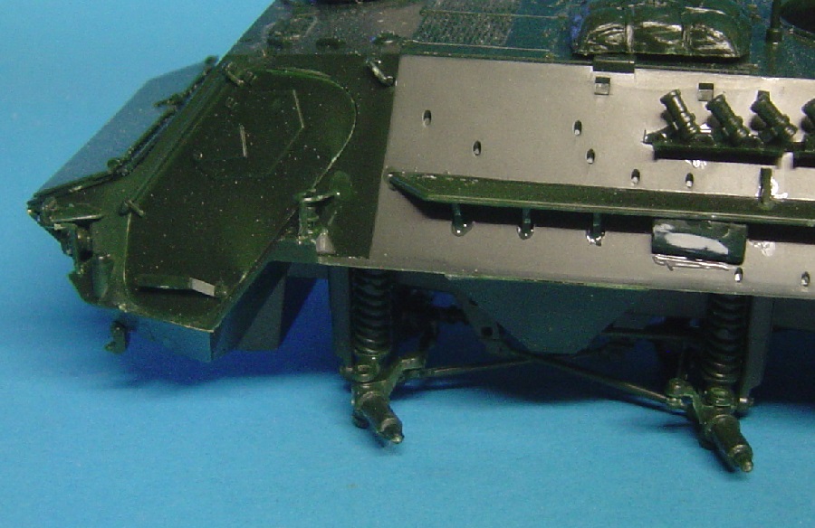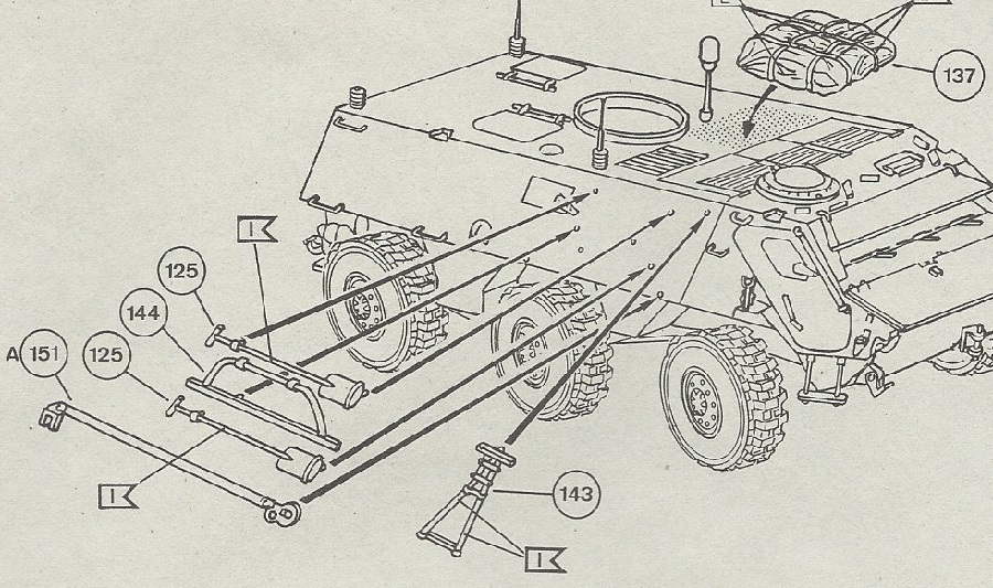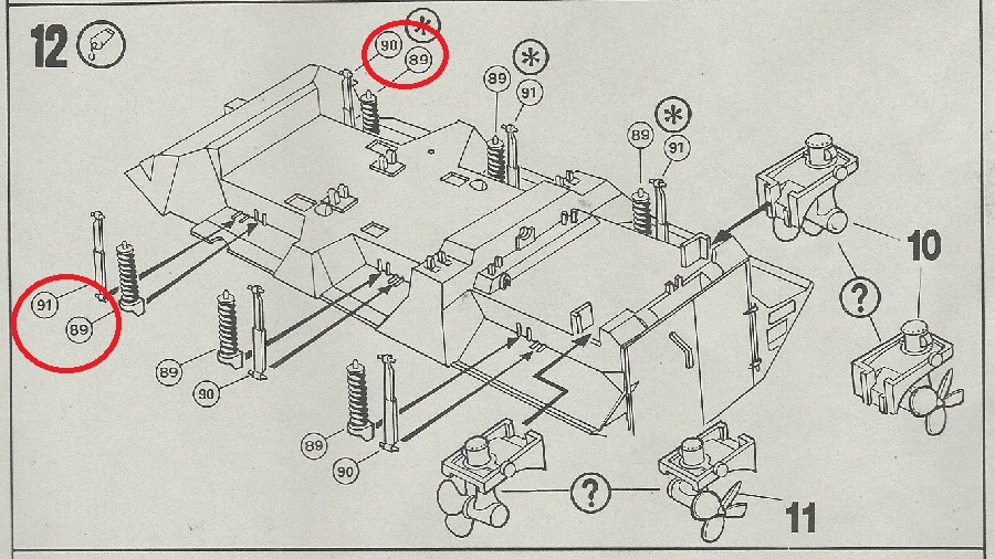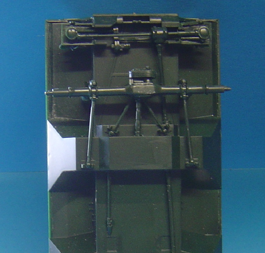 Ich bin dann mit dem Fahrgestell angefangen. Die Federn Teile 89 und die Dämpfer Teile 90/91 werden erst direkt vor der Klebung der entsprechender Achse an der Wanne verklebt.