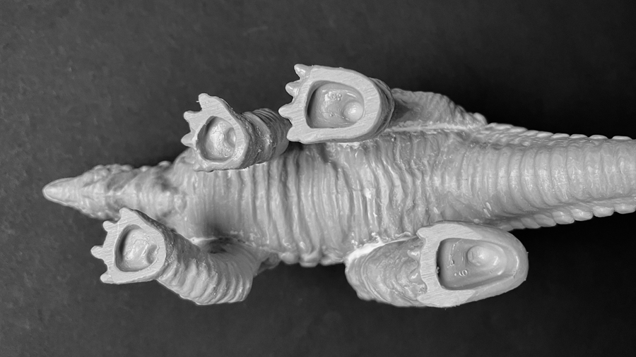 Noch ist das Modell unvollständig – es fehlen noch Knochenplatten und Dornen.