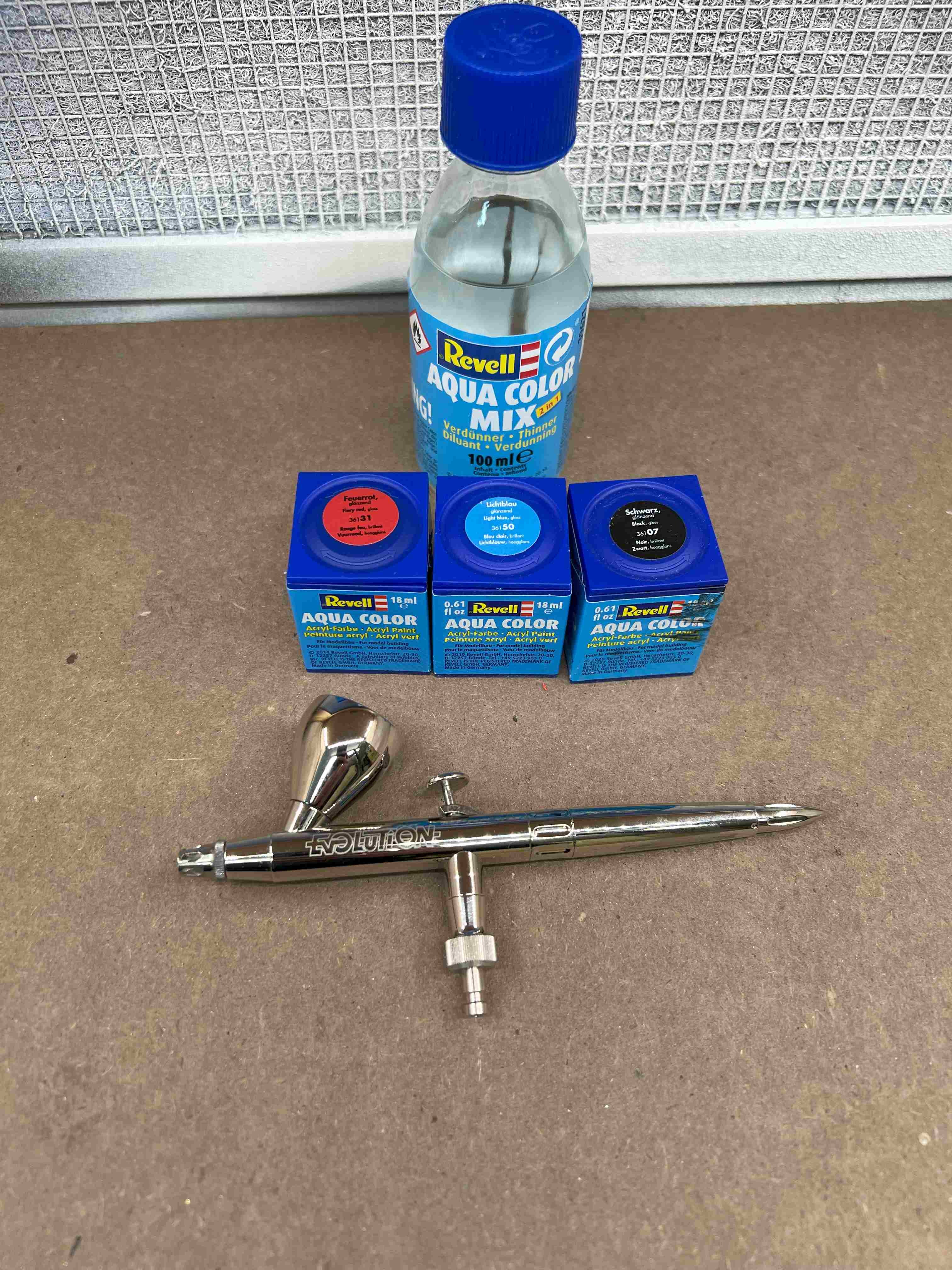 Ich gebe zu, die Revell Aqua Colorfarben lassen sich nicht ganz so leicht zu händeln sind, wie Farben anderer Hersteller, die explizit zum Airbrushen hergestellt bzw. ausgewiesen sind.