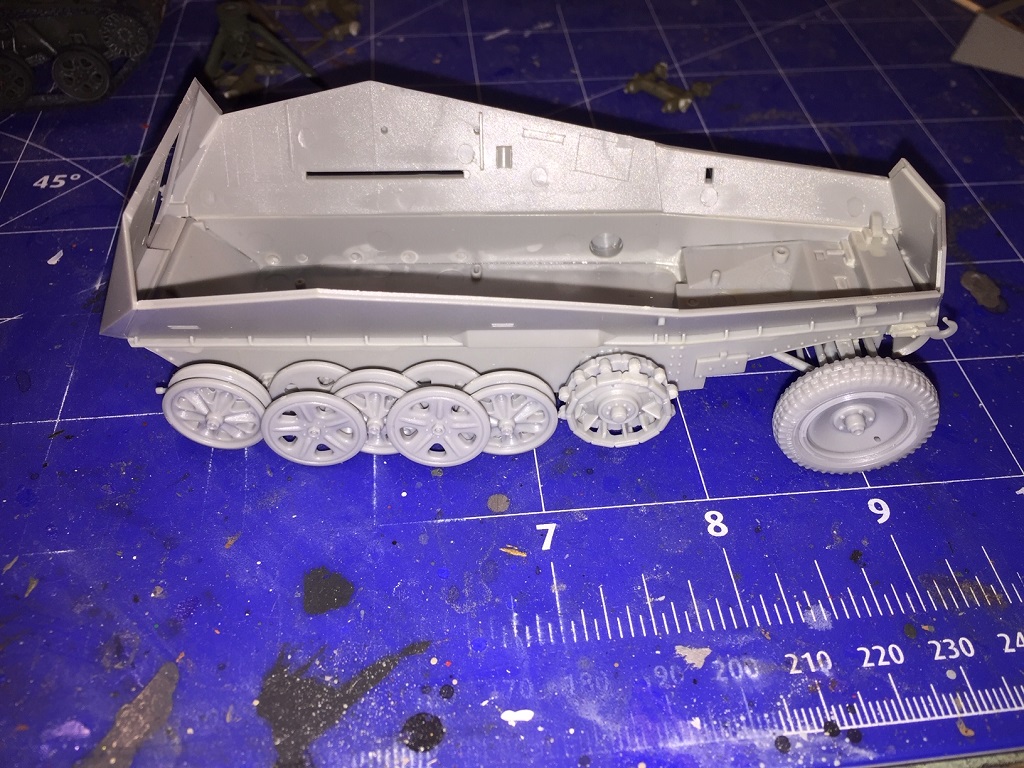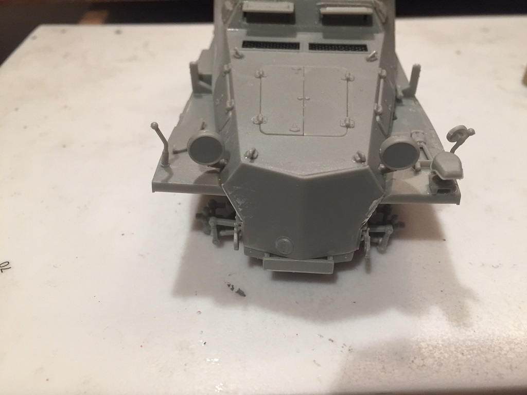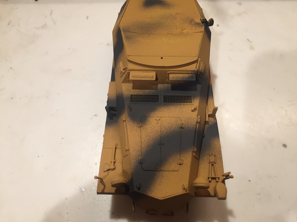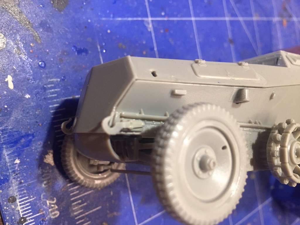 Bei dem Greif handelt es sich um ein Sd.Kfz.250/3 Z. Z, weil das Fahrzeug von der Firma Böhler gebaut wurde. Böhler baut eigentlich den Beobachtungskraftwagen (Sd.Kfz. 253), ein Sd.Kfz. 250 mit geschlossenem Dach. Sie stellten aber auch 400 Wannen ohne Dach her. Diese Wannen entsprachen aber nicht den Vorgaben der offiziell genehmigten Serienversion. Warum und weshalb das geschah, ist mir nicht bekannt. Die Wannen wurden aber abgenommen und zu den entsprechenden Versionen weiter ausgebaut. Und aus einer dieser 400 Wannen wurde nun "unser" Greif. Dragon hat nun diese abweichenden Merkmale sehr gut umgesetzt. Torsten hat in seinem Baubericht die Passungenauigkeit erwähnt, ich habe daher mal meine Wanne zusammen gesteckt.