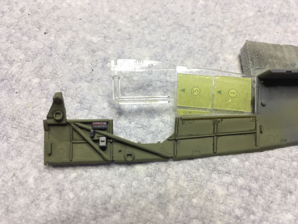 Auch wurden schon mal Masken auf die Scheiben geklebt. Tamiyatypisch mußten diese erst mal ausgeschnuitten werden.