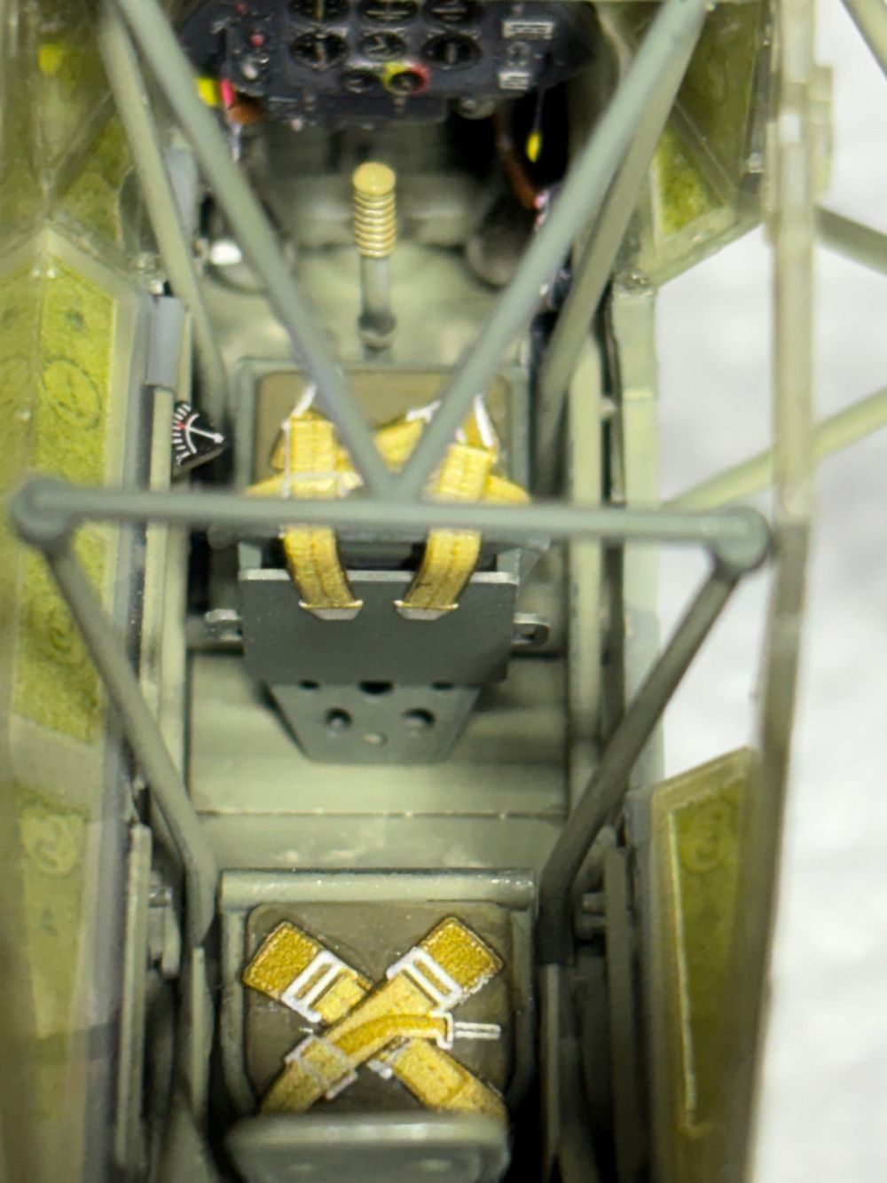Dann wurde der Sitz bemalt, mit den Gurtdecals von Quinta bestückt und eingebaut.