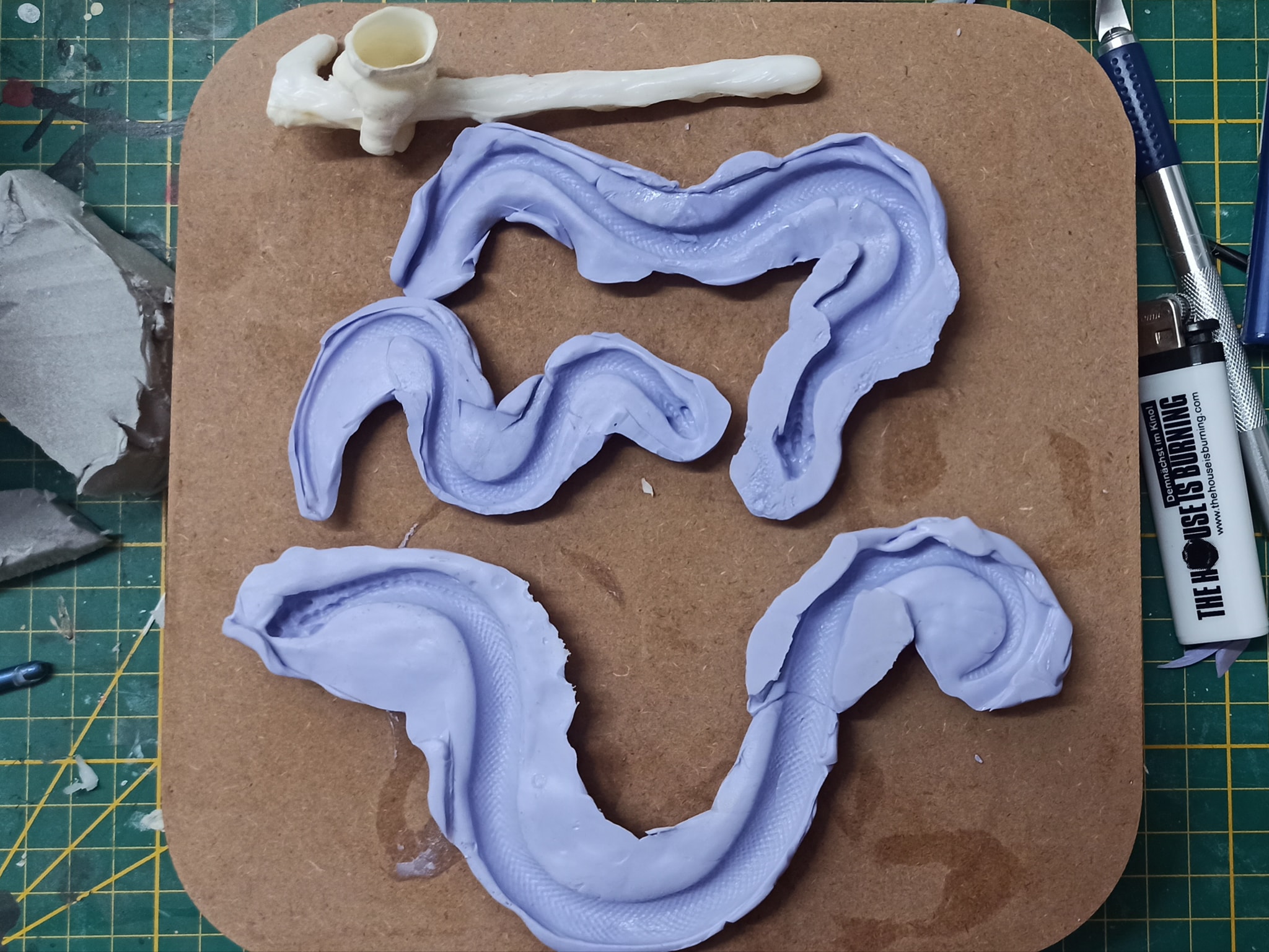 Die Trocknungszeit nutze ich um zu testen wie gut sich die Schlangen abformen lassen. Funktioniert mit Milliput eher so semigut, was aber unter anderem auch an meinen wabbeligen Formen liegt. Hier wären stärkere Ränder sicher sinnvoll gewesen. xD