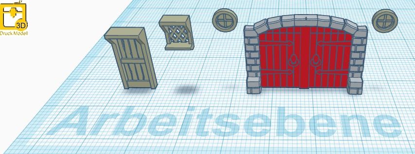 Hier habe ich Fenster, Türen und das Stalltor erstellt:
