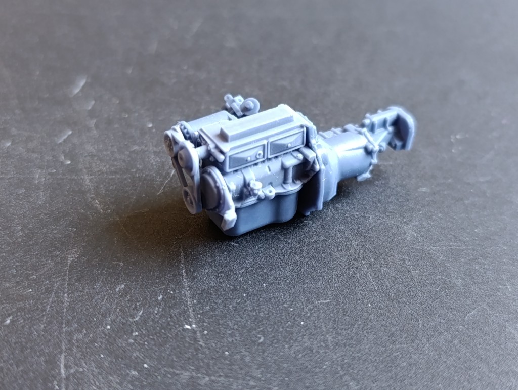 Wie der Zufall will habe ich ein erst dieses Jahr erschienenes Detailset gefunden und beim Hersteller direkt in Australien bestellt. Tatsächlich dauerte es nicht ganz 10 Tage bis ein Karton der Australien Post bei mir eintraf. Dieser Sets ergänzt das Modell nochmal um dutzende sauber gegossene Resinteile für Motor, Unterboden und Reifen. Zu haben übrigens normal über eBay.