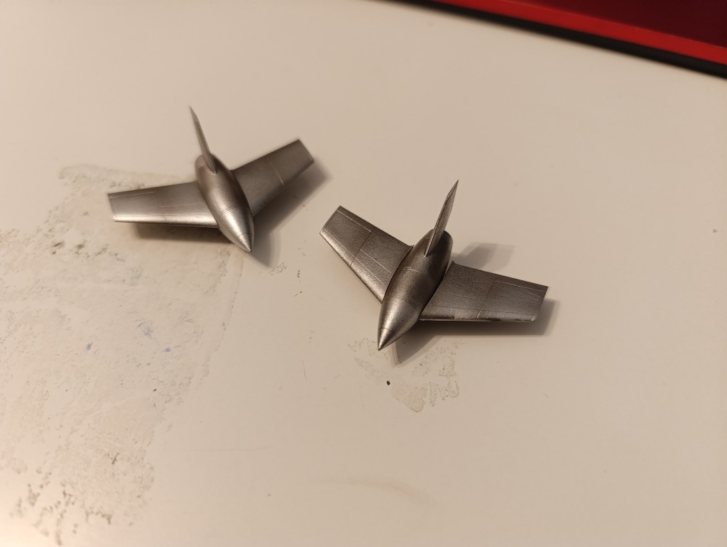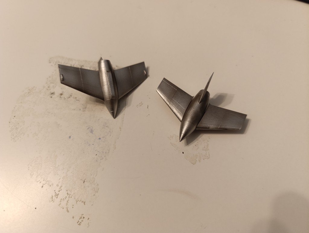 Danach kamen die beiden Raketen, diese hatten bereits vorher einen schwarzen Glanzlack zur Grundierung gekommen. Nun kam der Metalllack.